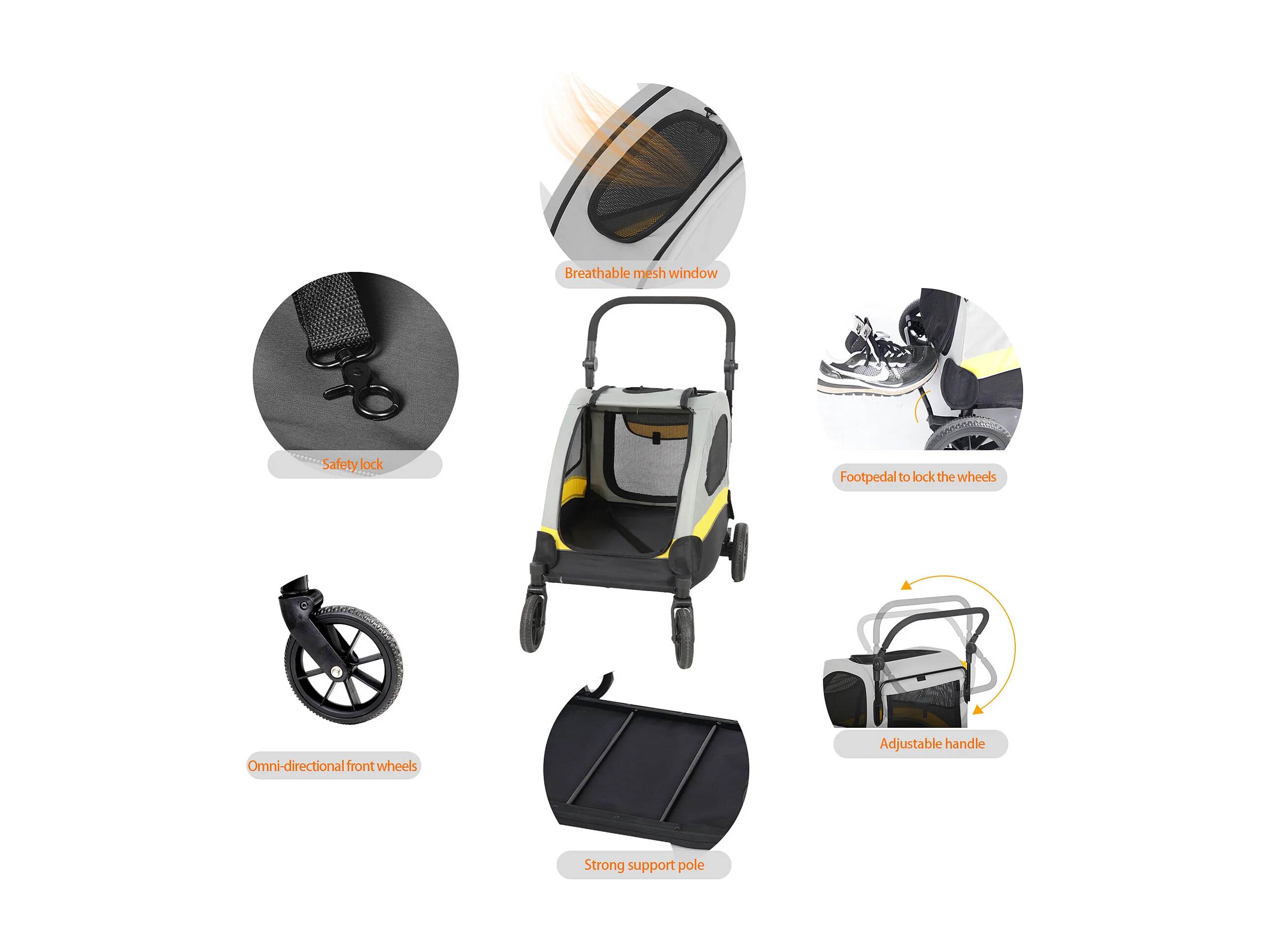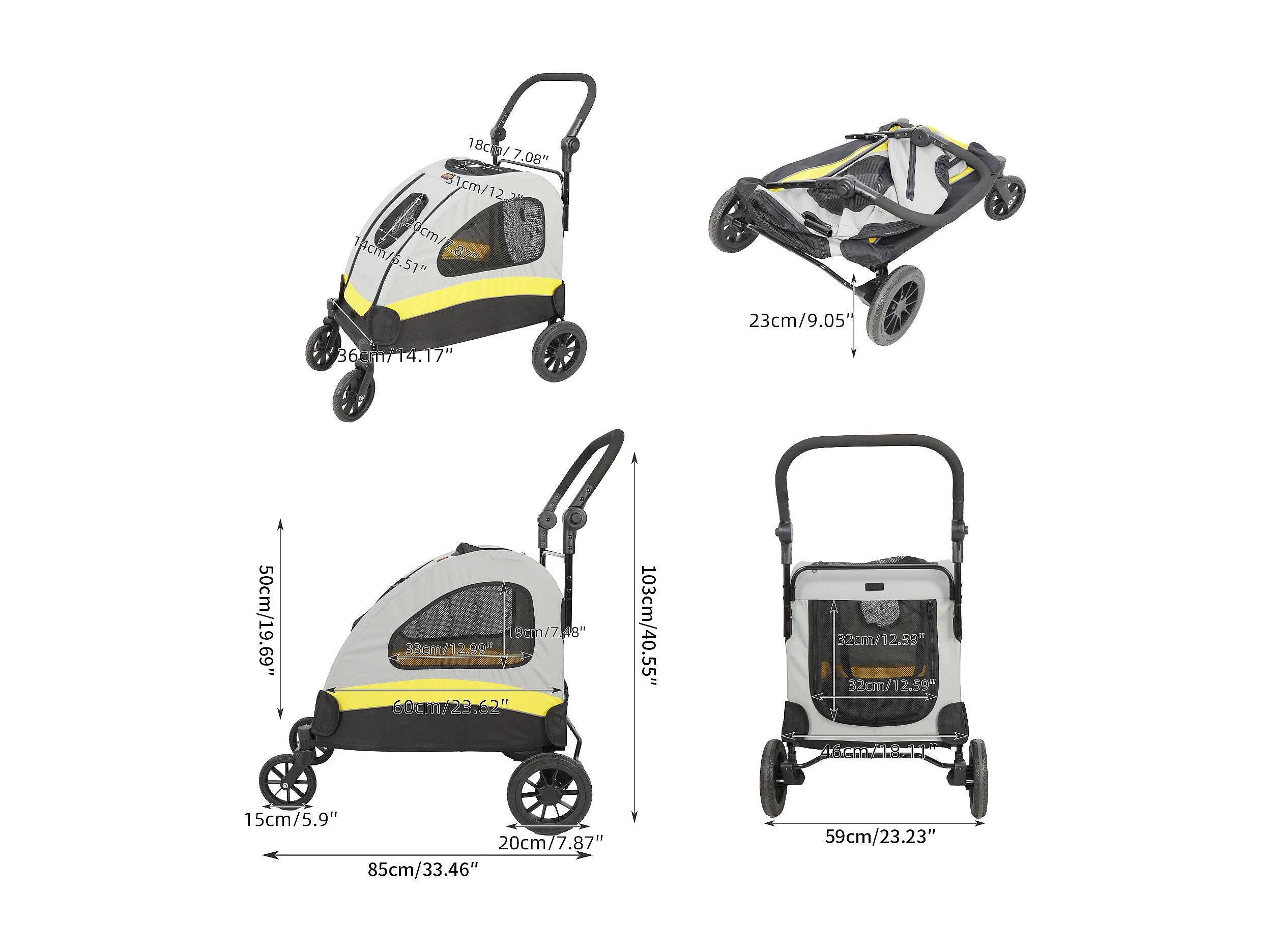 Chariot à roulettes pour animaux 4 roues poussette chien de petite taille pliable 57x76x102cm