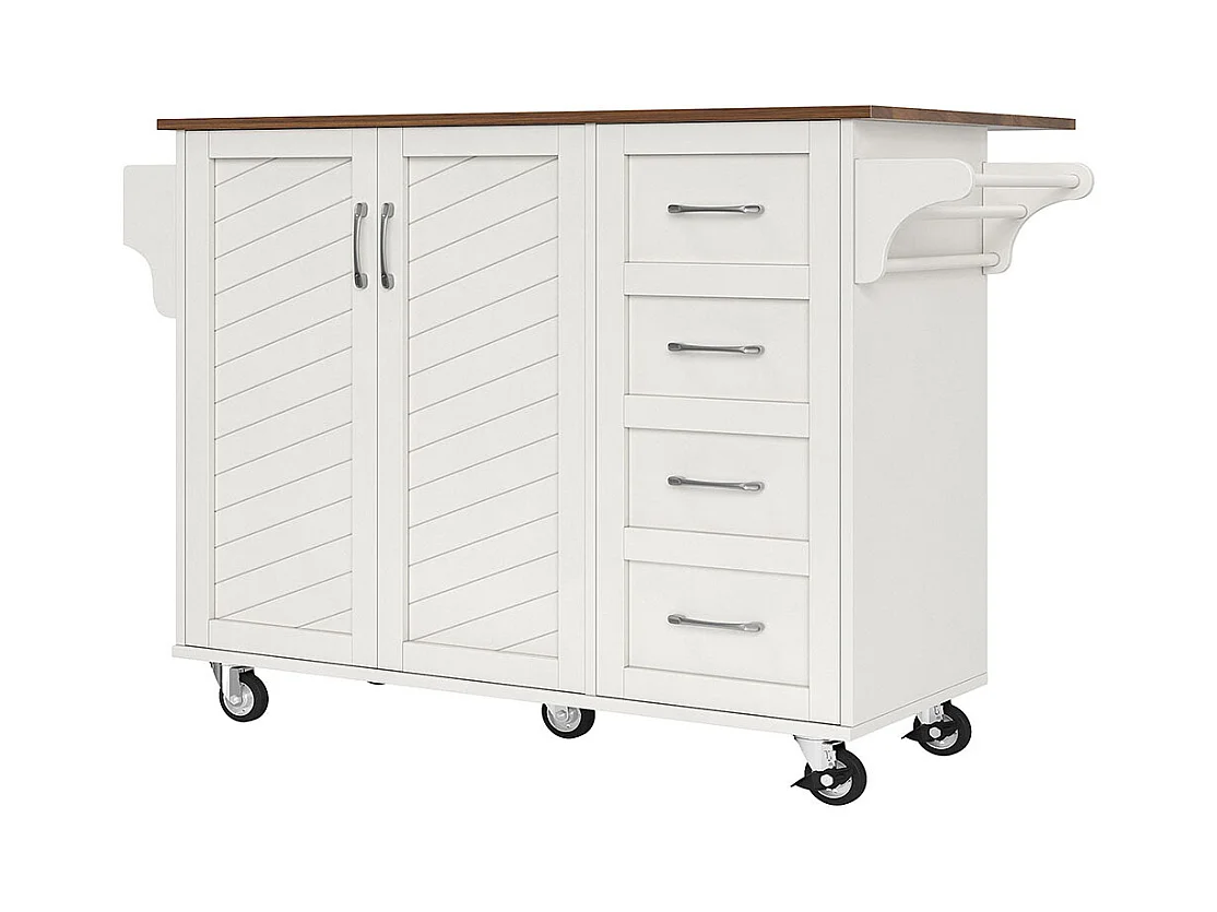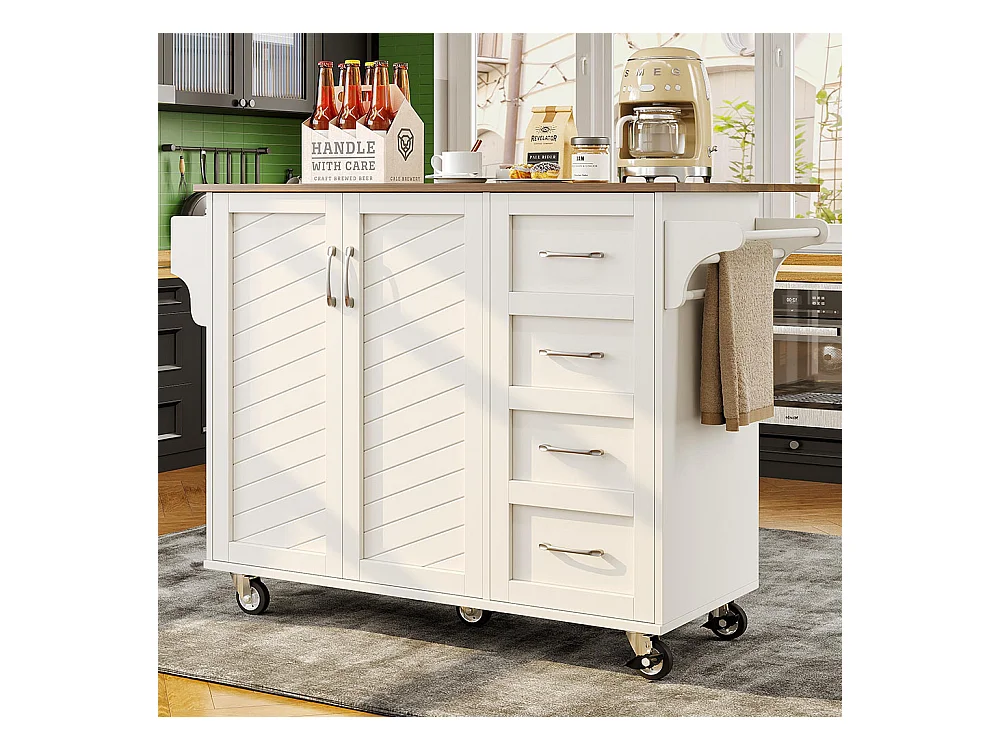 Chariot cuisine portes rayures diagonales amovible porte-serviettes étagère à épices plateau bois blanc