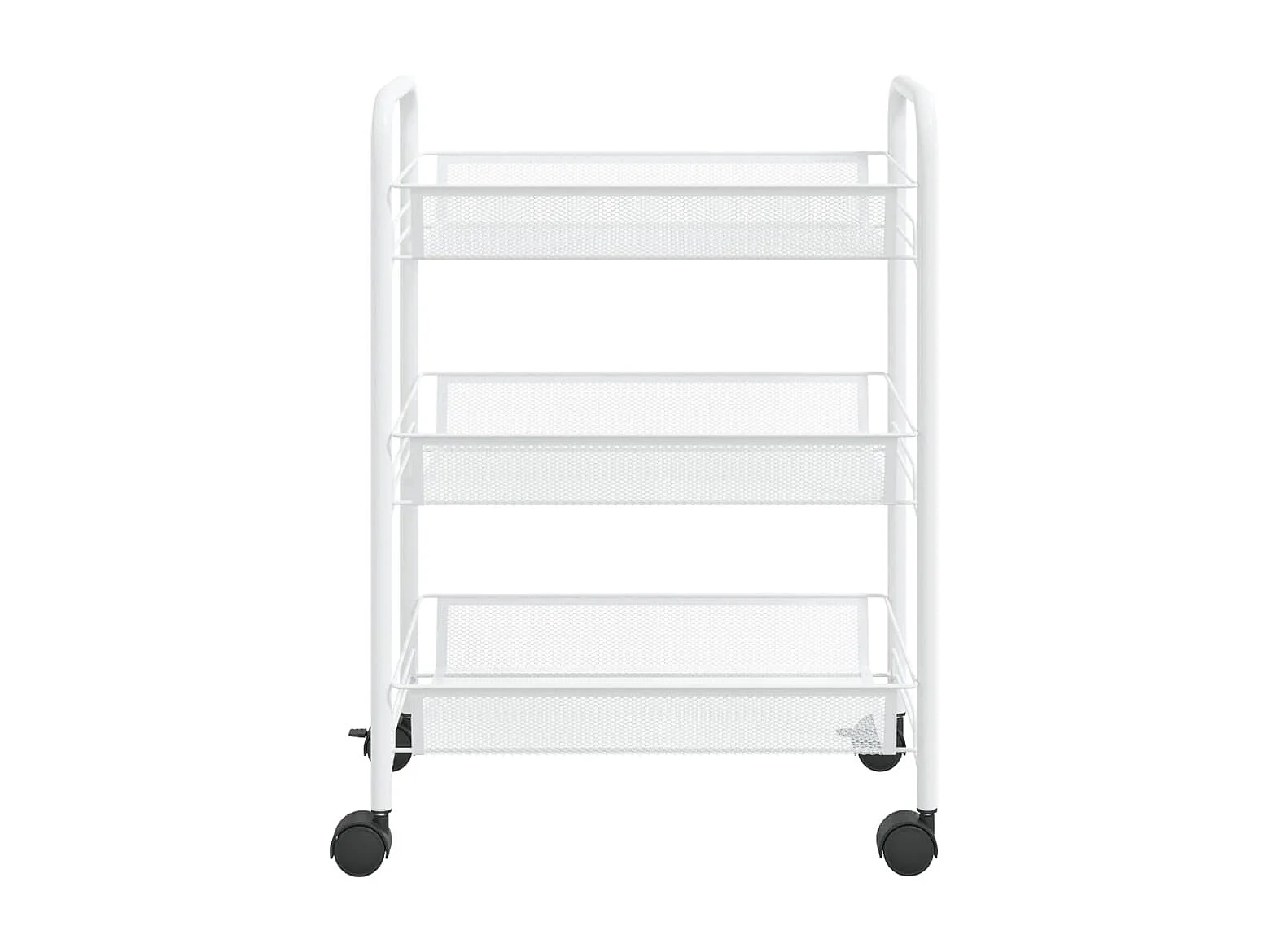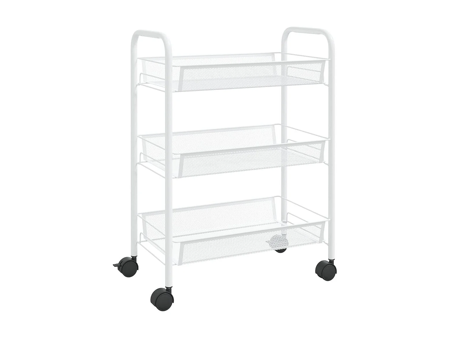 Chariot de service avec 3 étagères, roulettes, métal, blanc (42.4x29.8x74.5 cm)