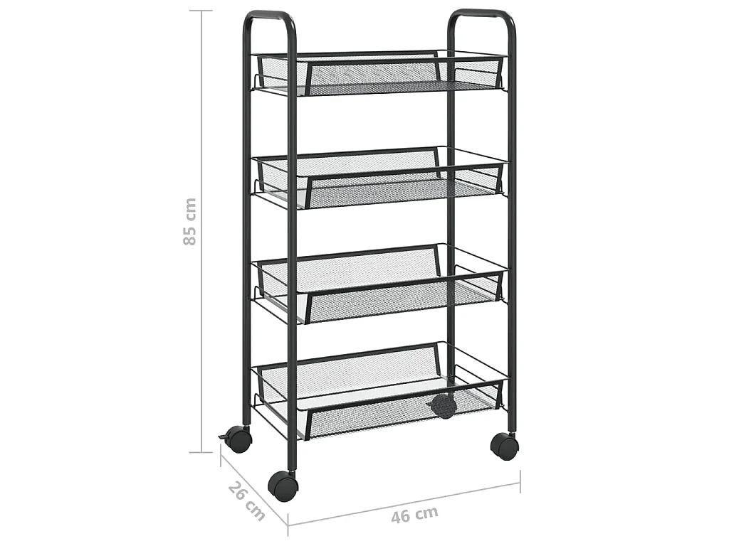 Chariot de cuisine à 4 niveaux Noir 46x26x85 Fer