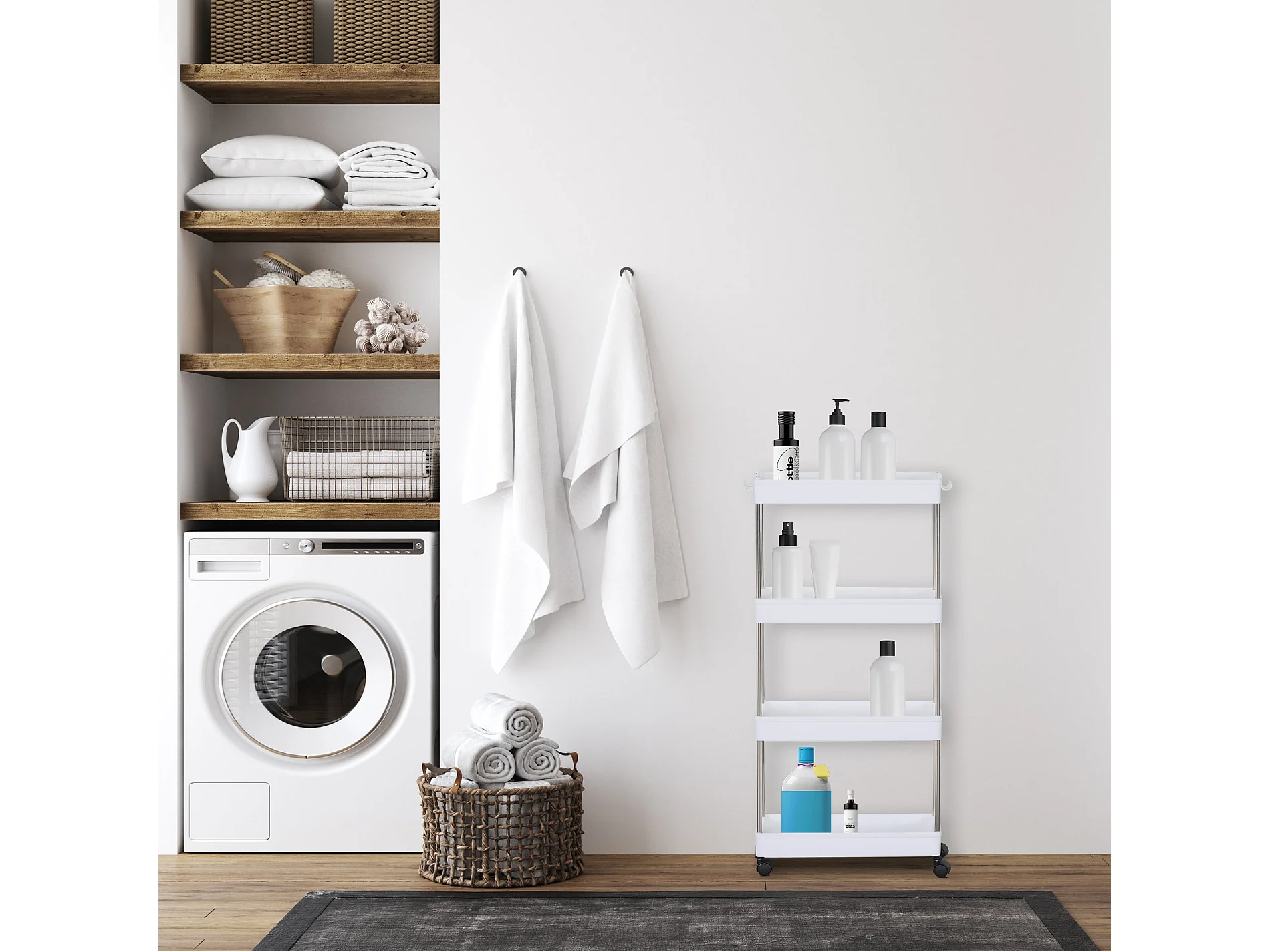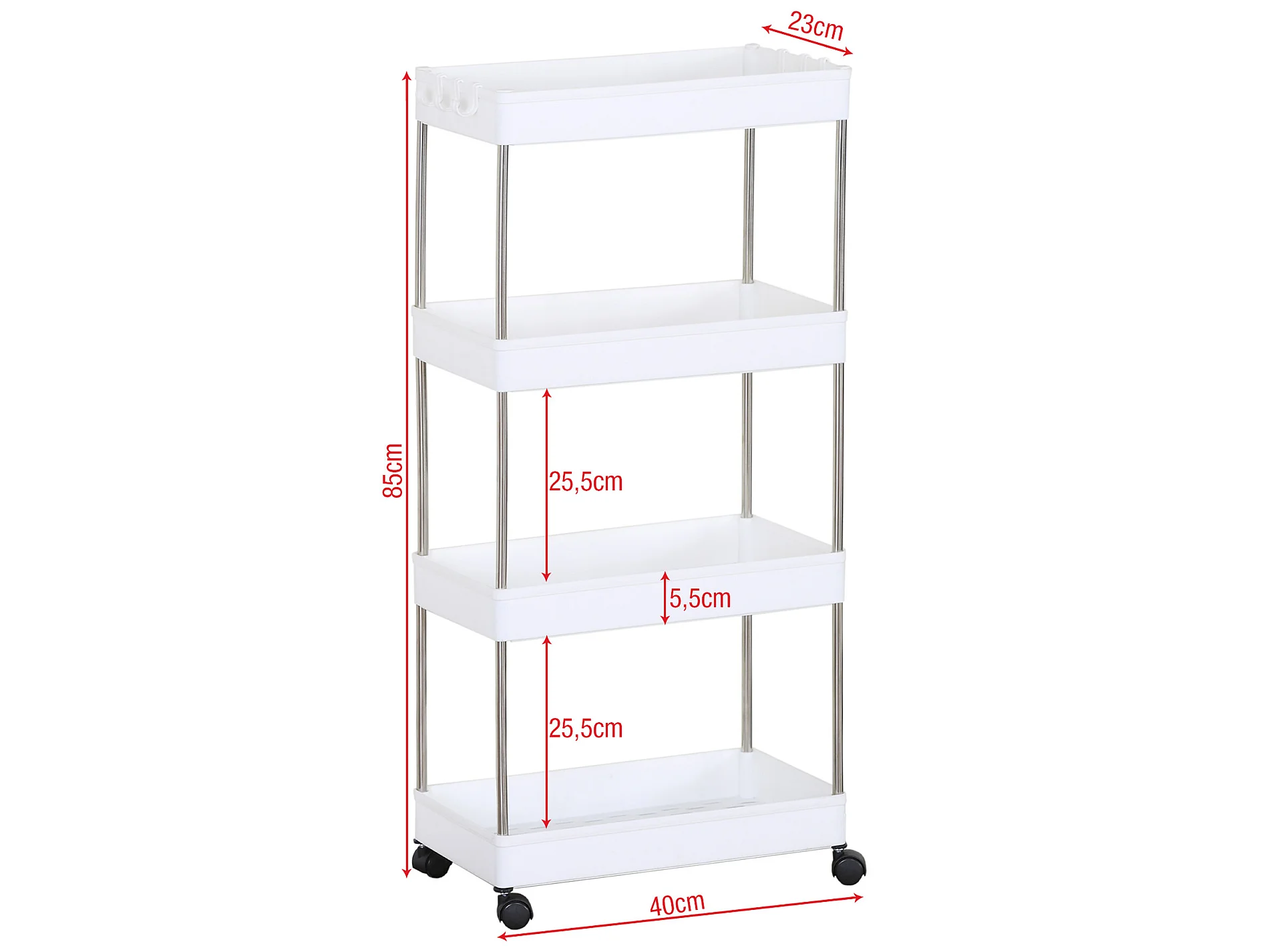 Chariot de cuisine Salle de bain avec roues 4 étagères Plastique Blanc