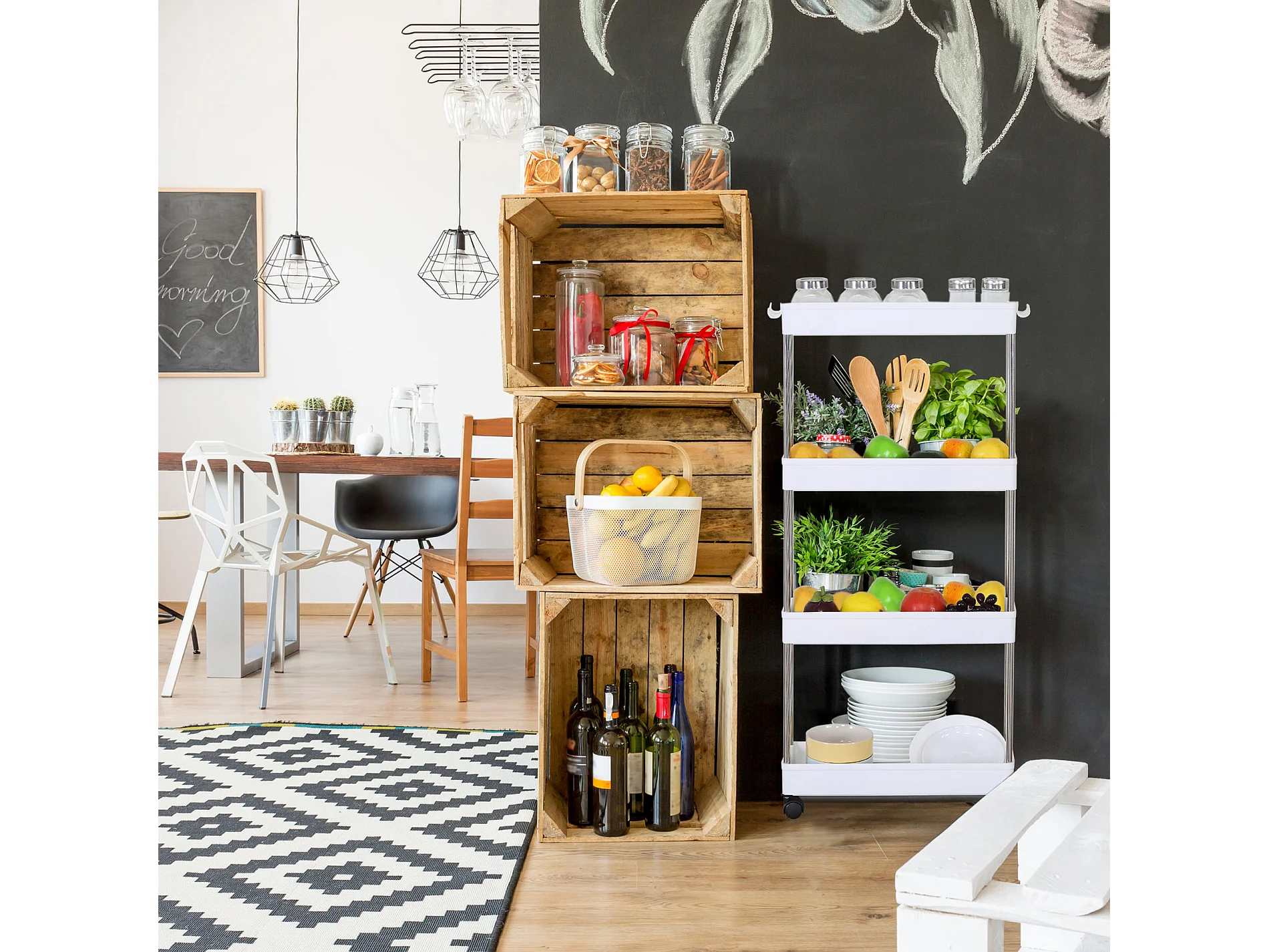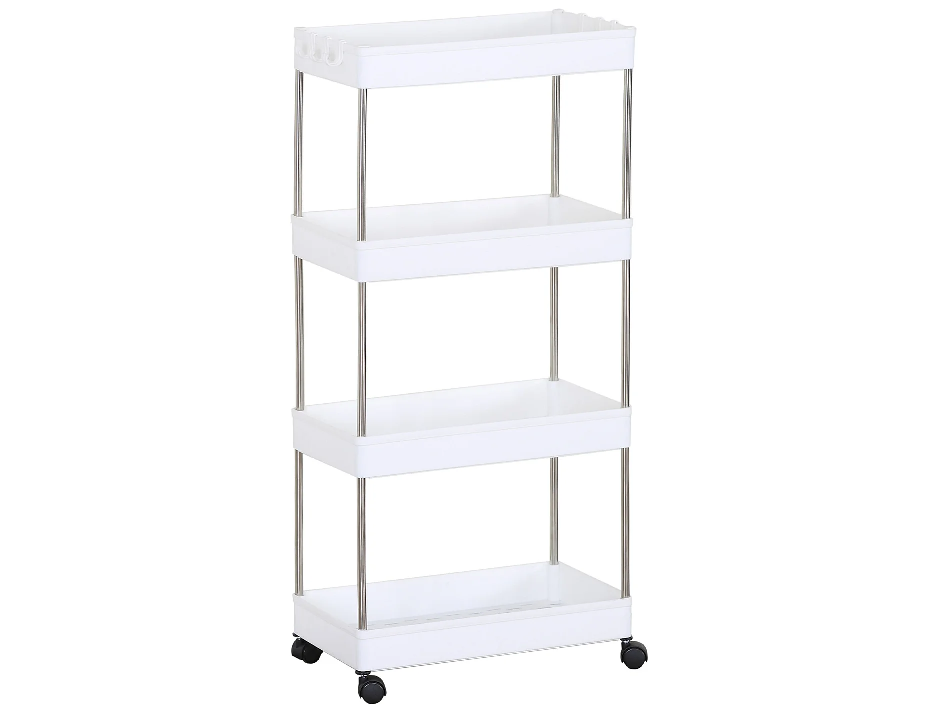 Chariot de cuisine avec roulettes 4 étagères en plastique blanc