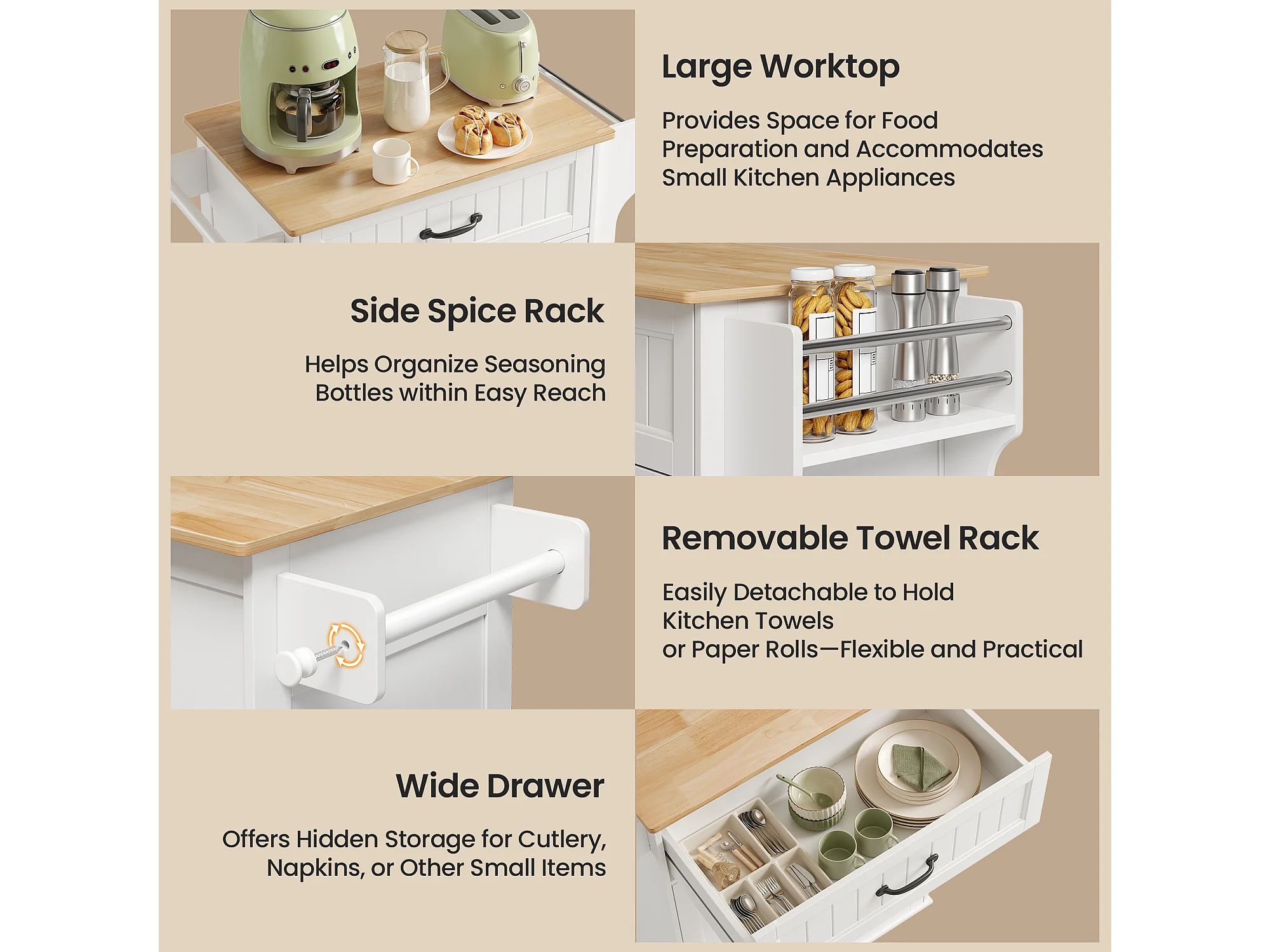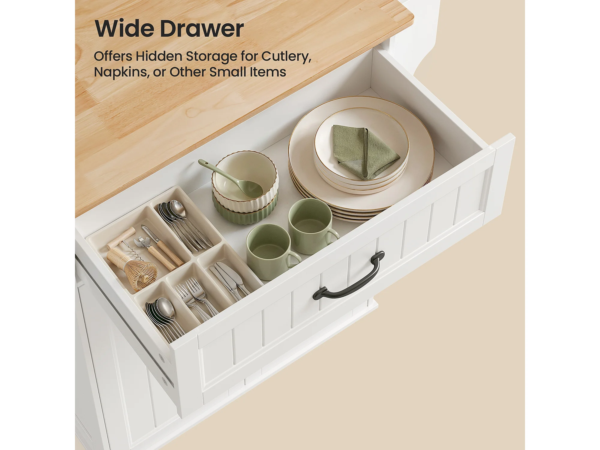 Desserte de cuisine (135x74x90.8cm)multifonction avec plan de travail en bois, rangement et roulette - Blanc