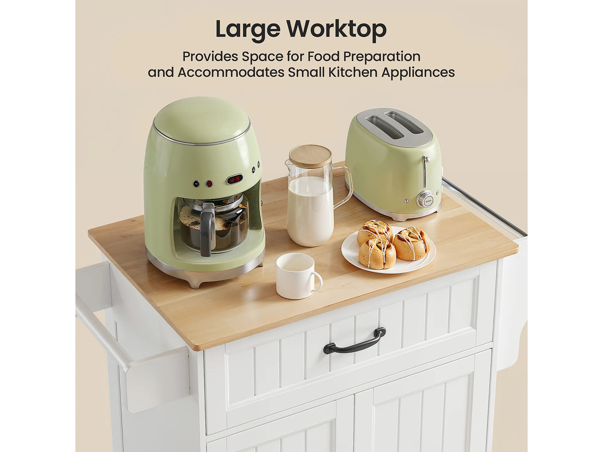Chariot de Cuisine Blanc avec Plan de Travail et Tiroir - 45 x 65 x 91 cm