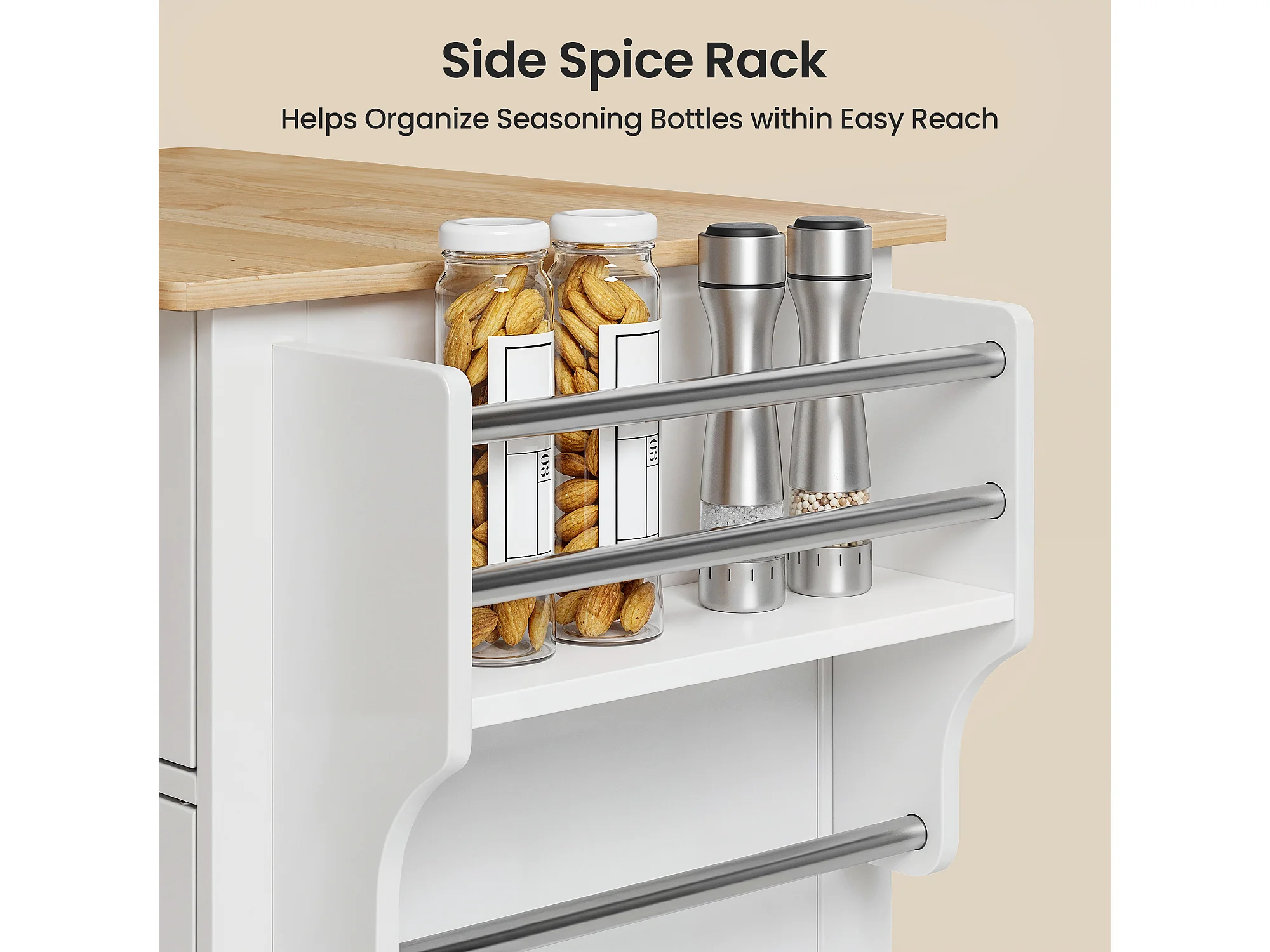 Desserte de cuisine avec table pliable, rangement pratique, porte-épices et porte-serviettes, 128×40×92,5 cm, blanc