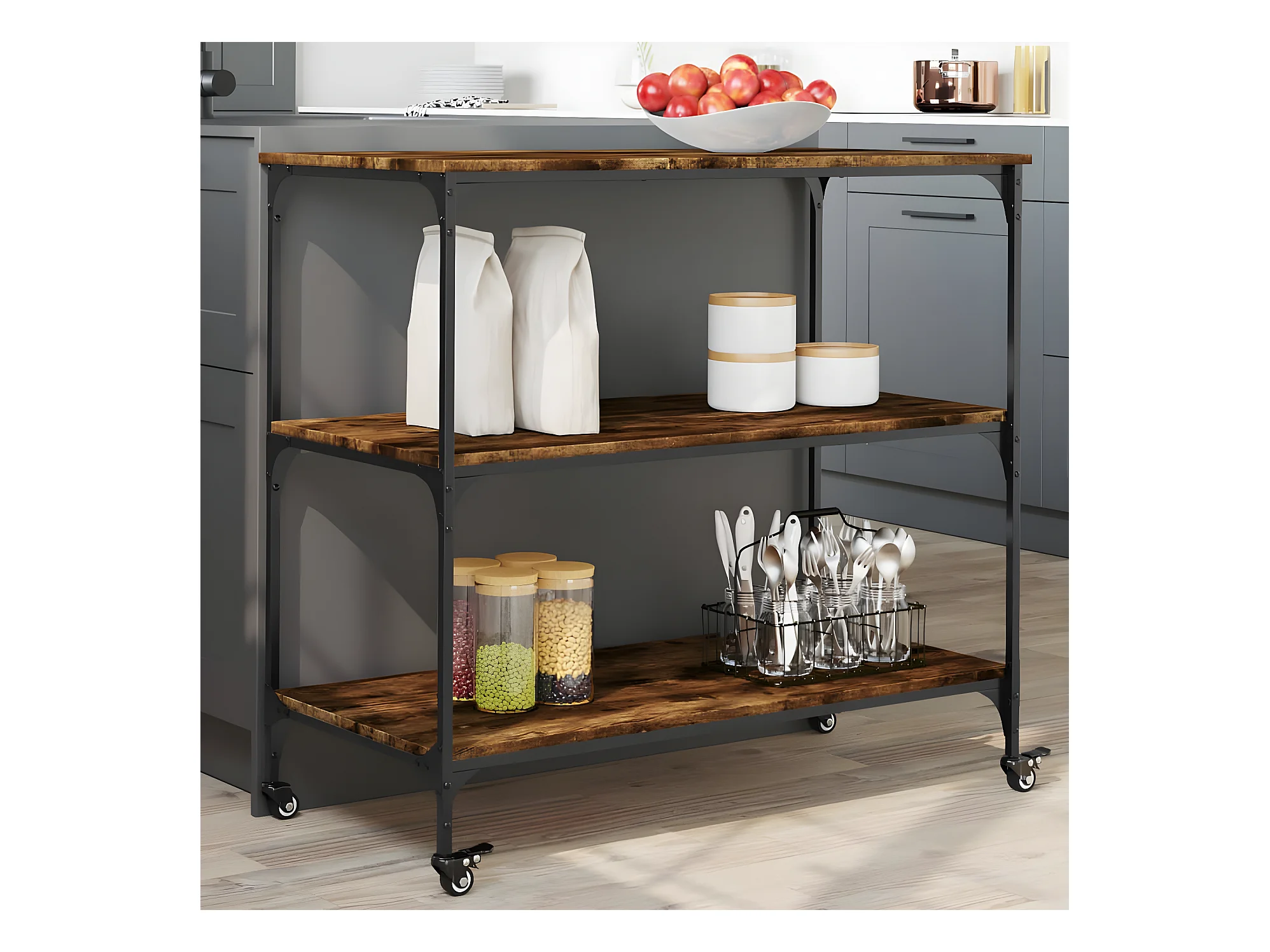 Chariot de cuisine chêne fumé 105x42x95 bois d'ingénierie