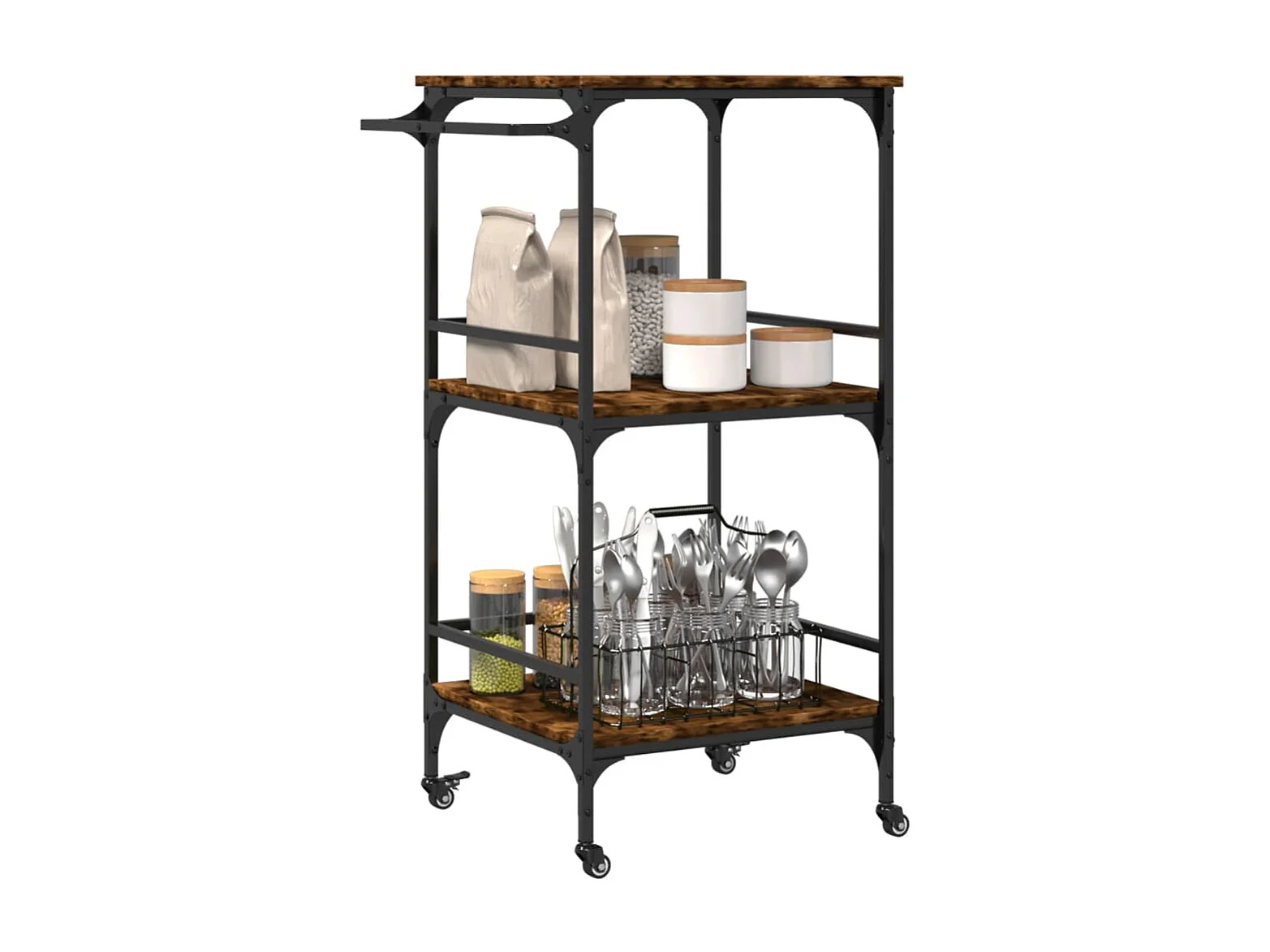 Chariot de cuisine chêne fumé 60,5x50x105 bois d'ingénierie