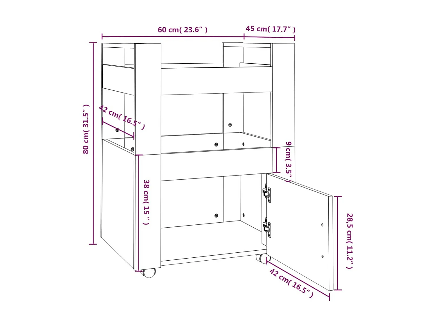 Chariot de cuisine Chêne fumé 60x45x80 cm Bois d'ingénierie