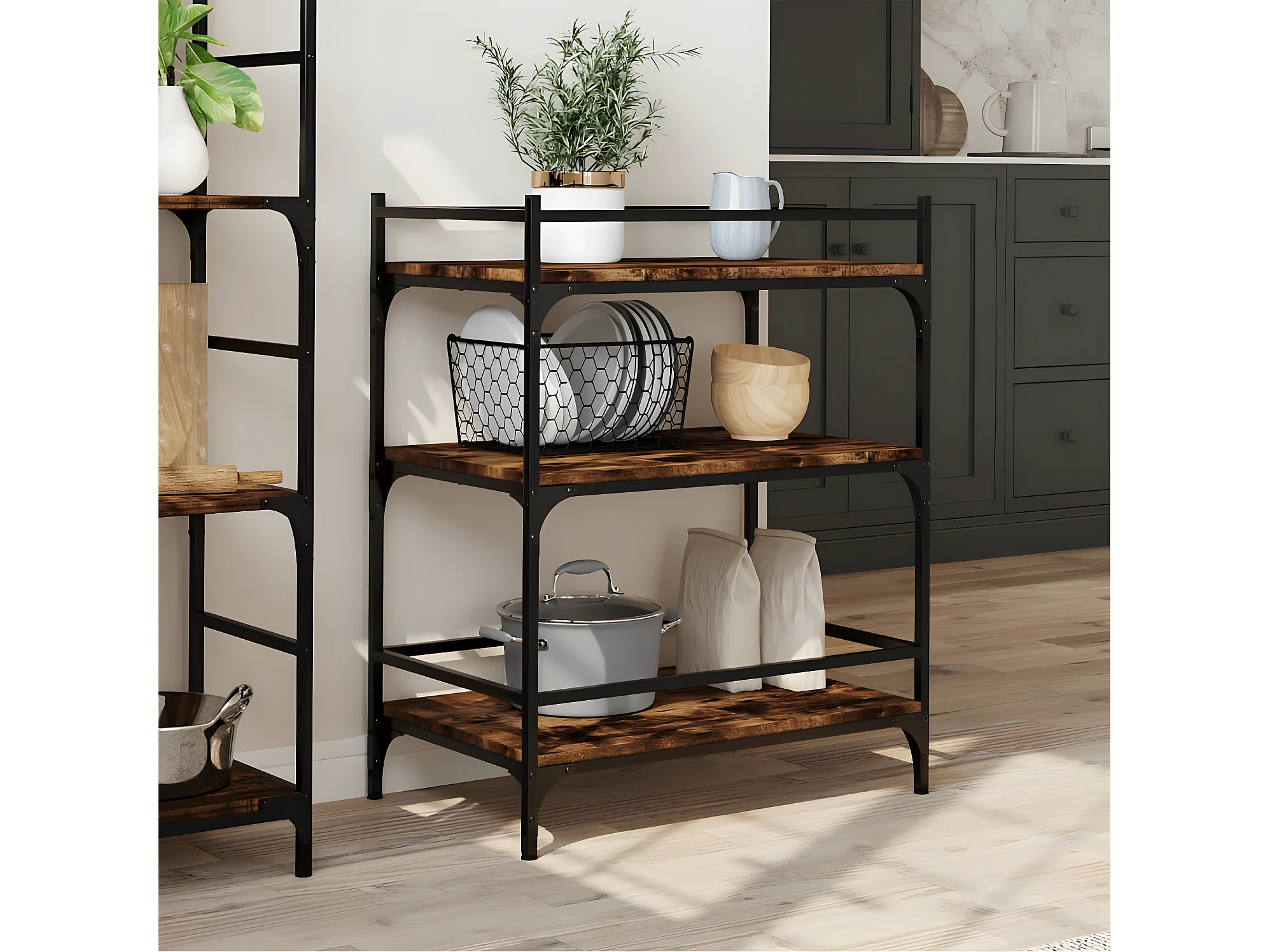 Chariot de cuisine chêne fumé 65x40x86,5 bois d'ingénierie