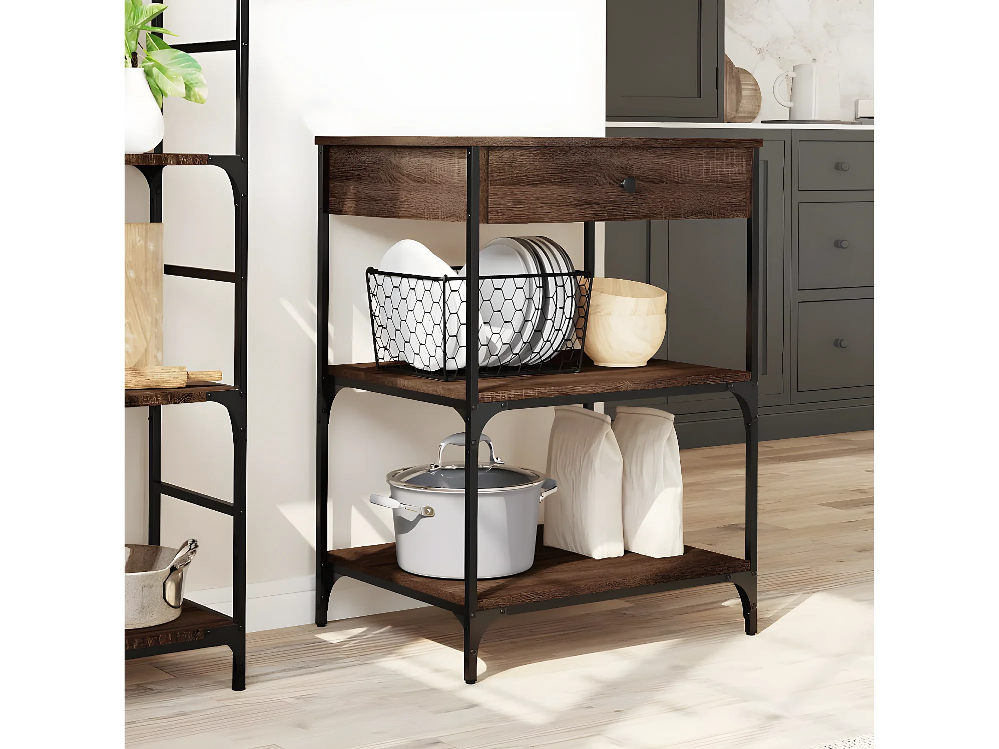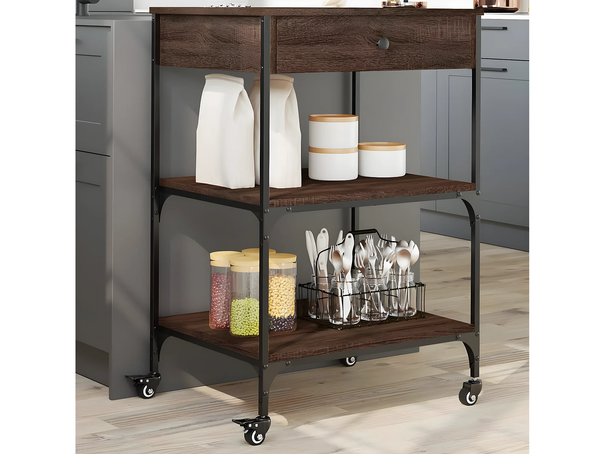 Chariot de cuisine chêne marron 60x48x89,5 bois d'ingénierie