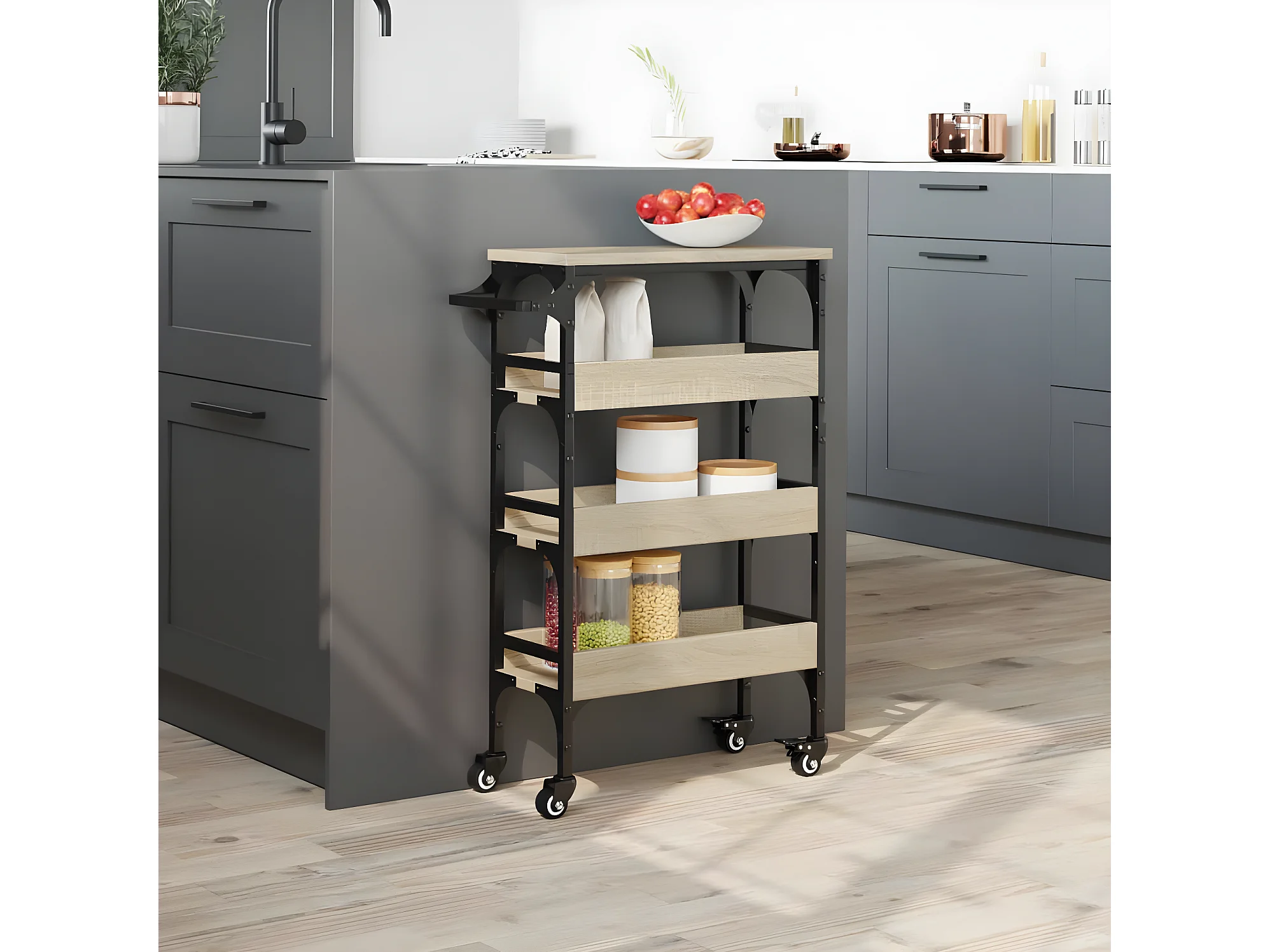 Chariot de rangement étroit 4 niveaux chêne sonoma