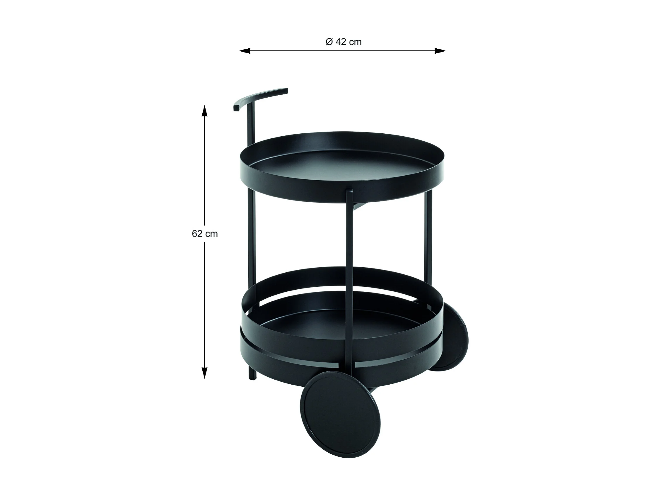 Chariot de cuisine, desserte en métal coloris noir - diamètre 42 x hauteur 62 cm
