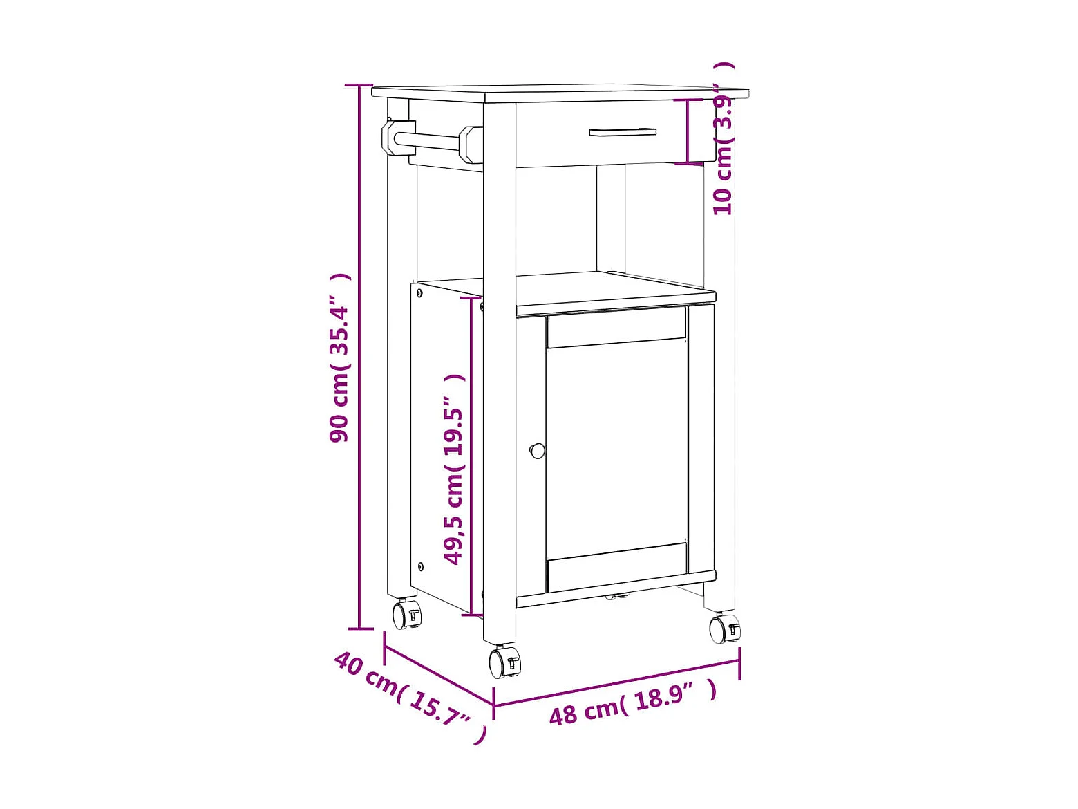 Chariot de cuisine MONZA 48x40x90 bois massif de pin