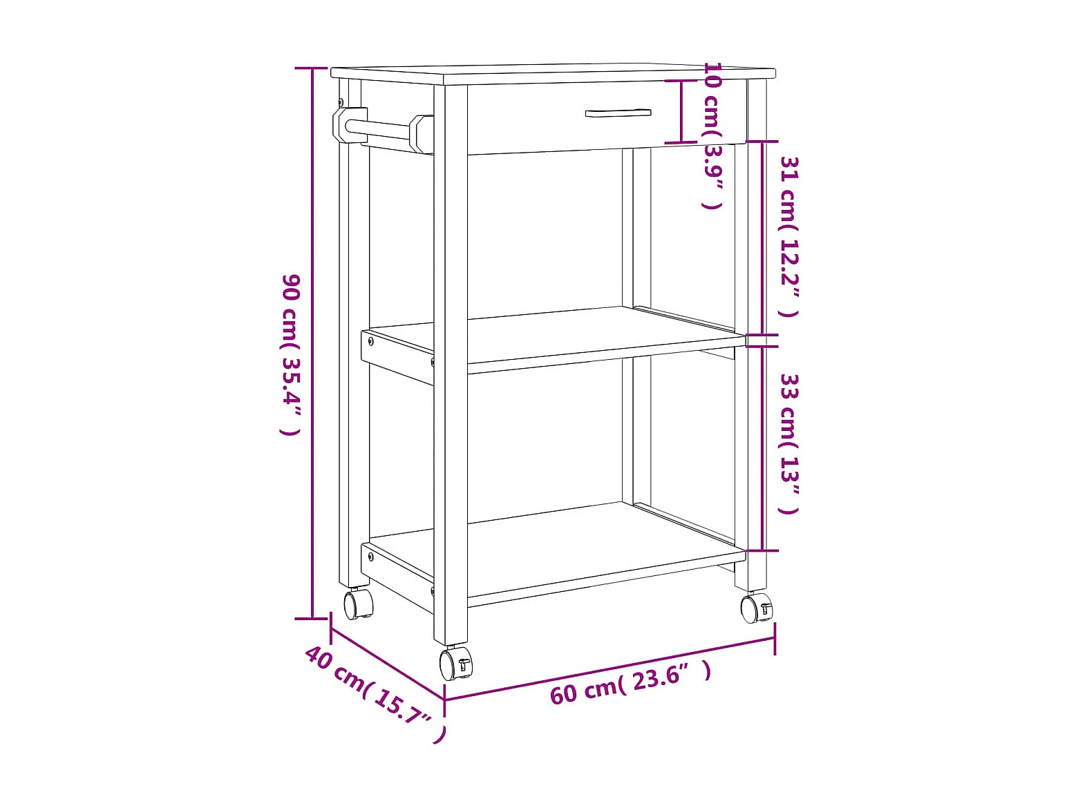 Chariot de cuisine MONZA 60x40x90 bois massif de pin