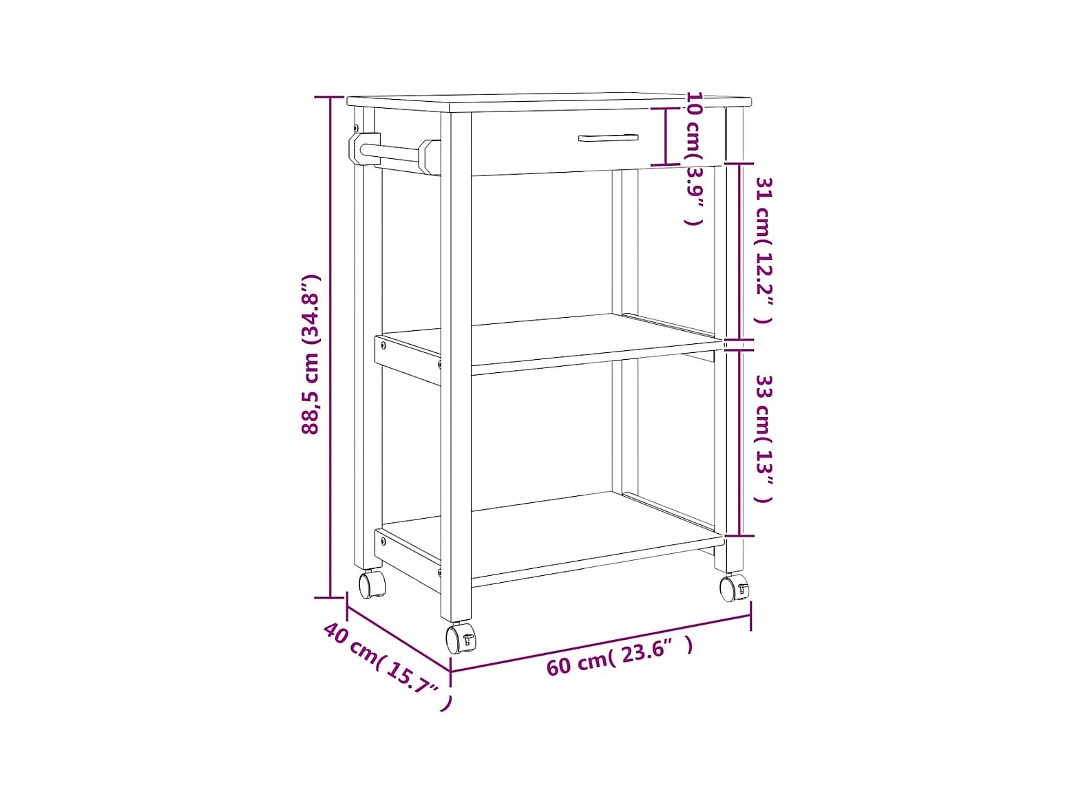 Chariot de cuisine MONZA 60x40x88,5 cm bois massif de pin