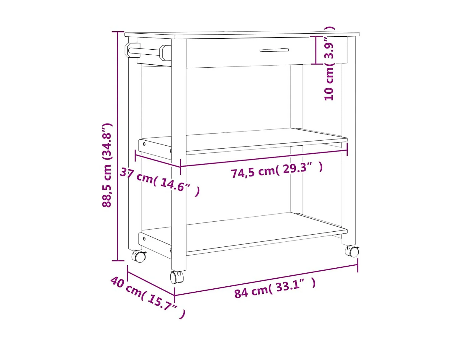 Chariot de cuisine MONZA 84x40x88,5 cm bois massif de pin