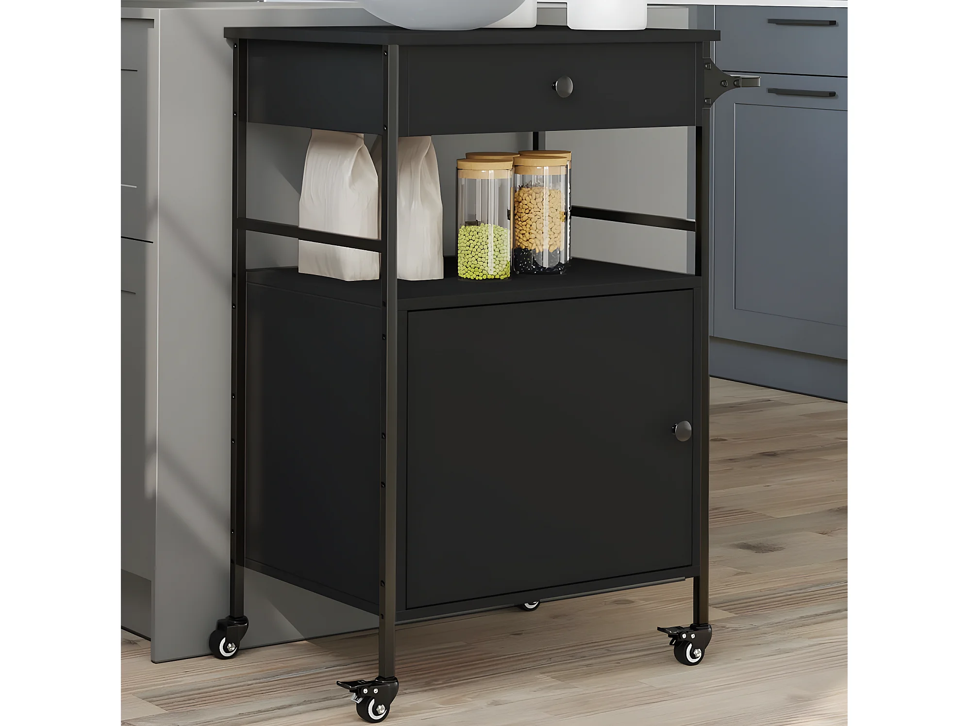 Chariot de cuisine noir 56x43x89,5 bois d'ingénierie