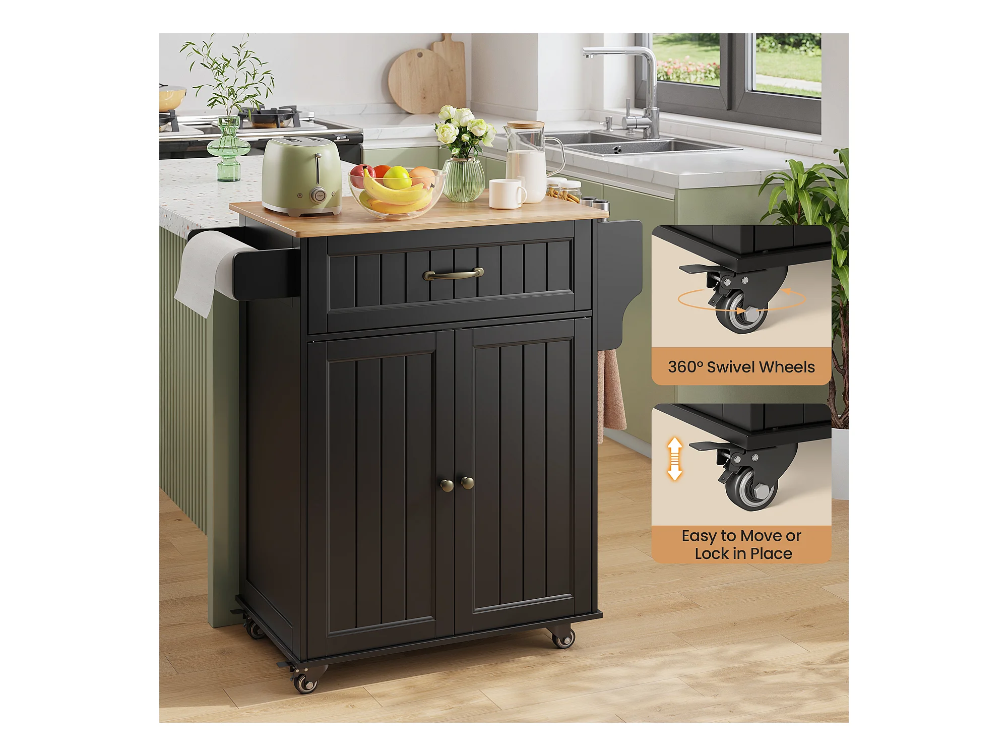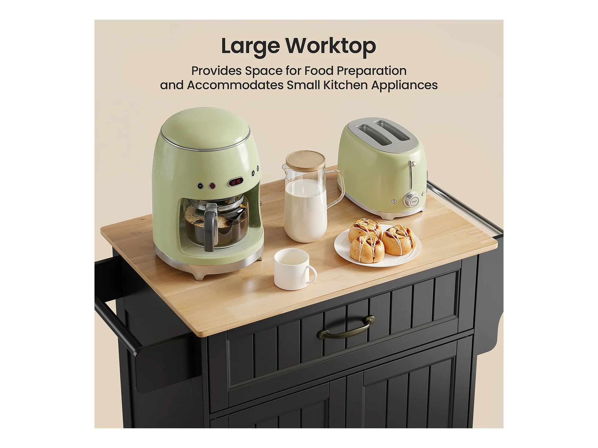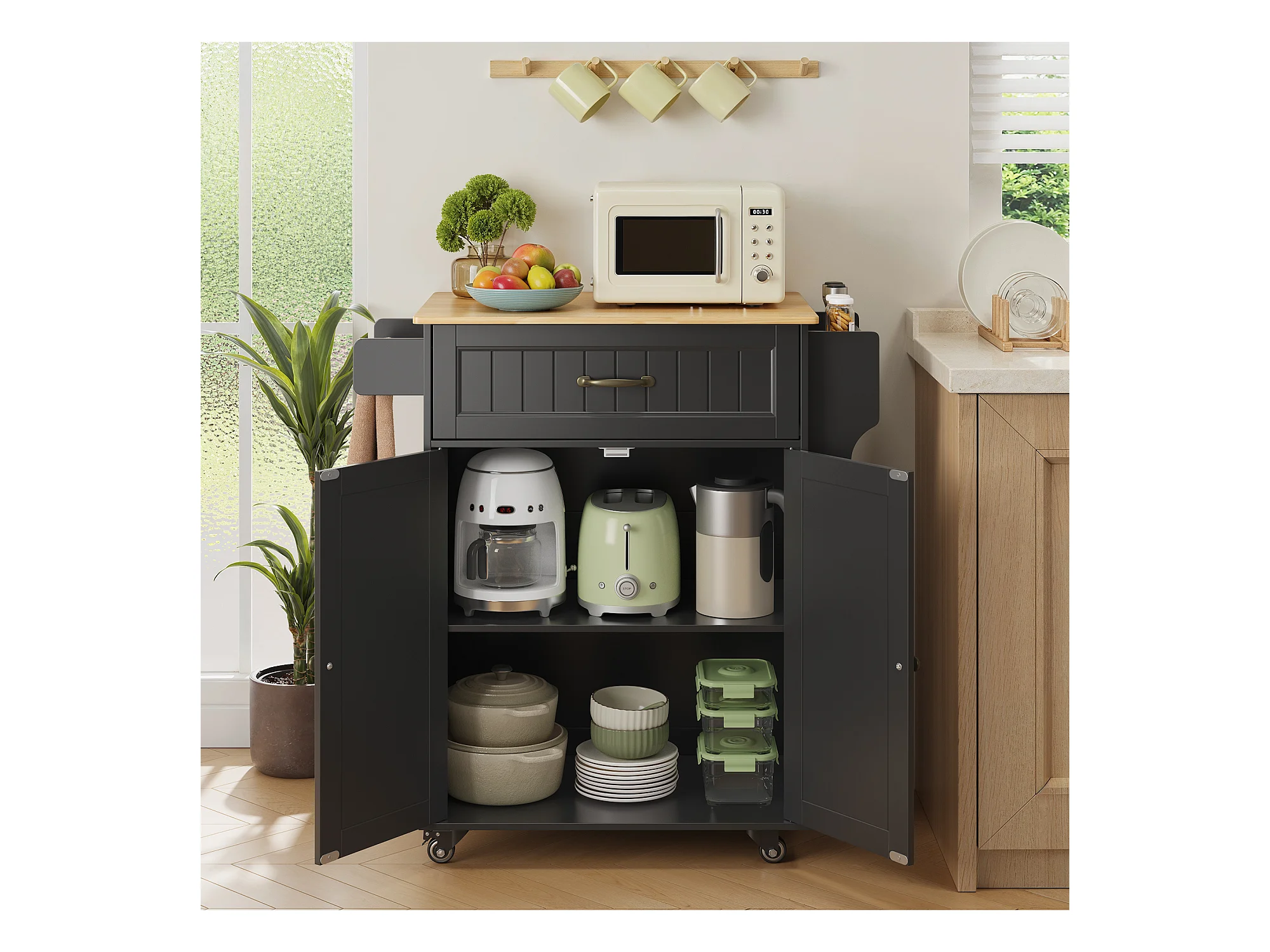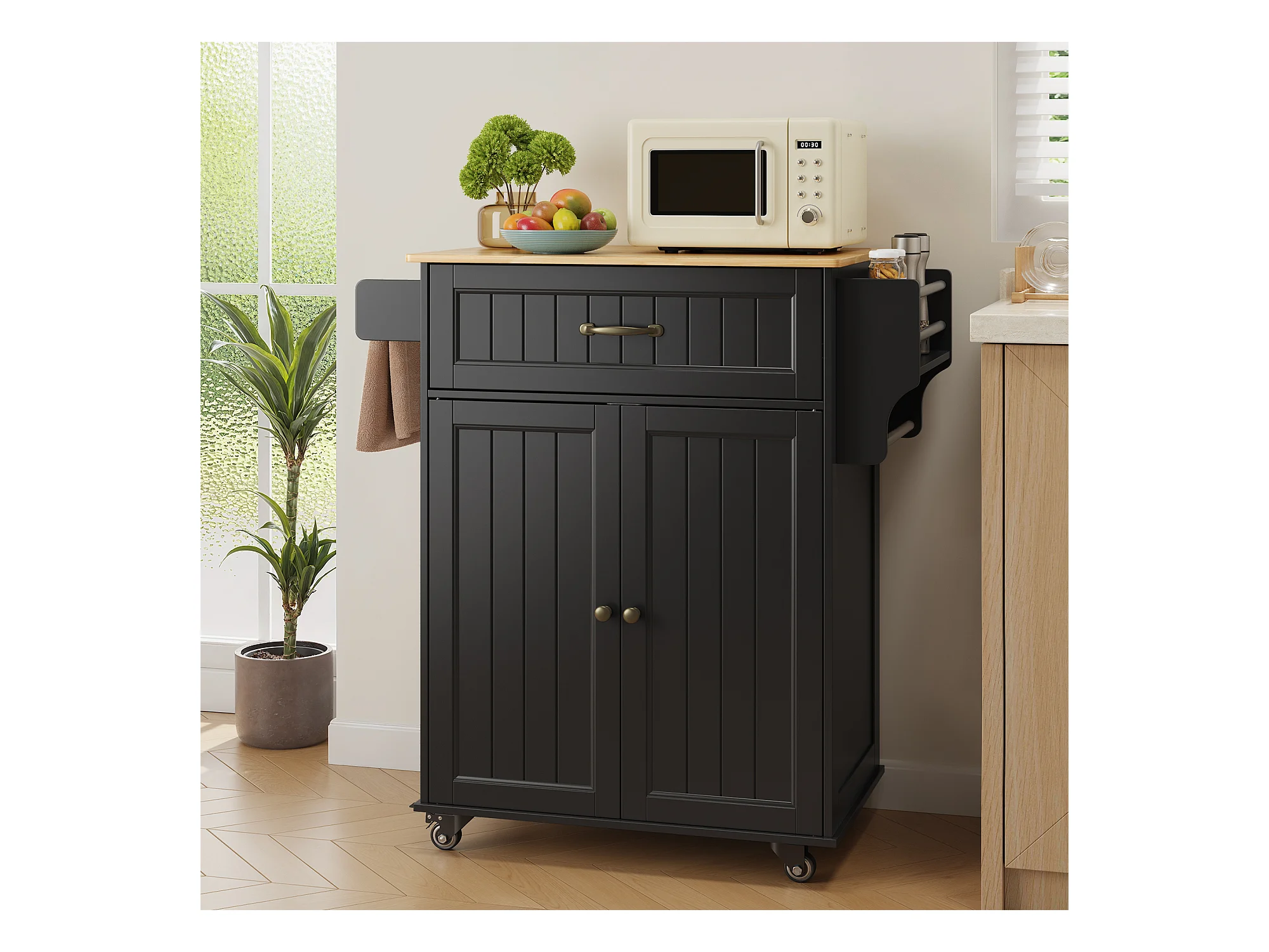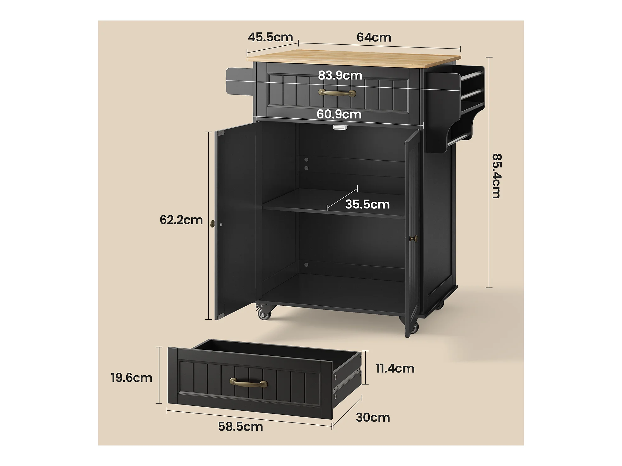 Chariot de Cuisine Noir avec Plan de Travail et Tiroir - 45 x 65 x 91 cm