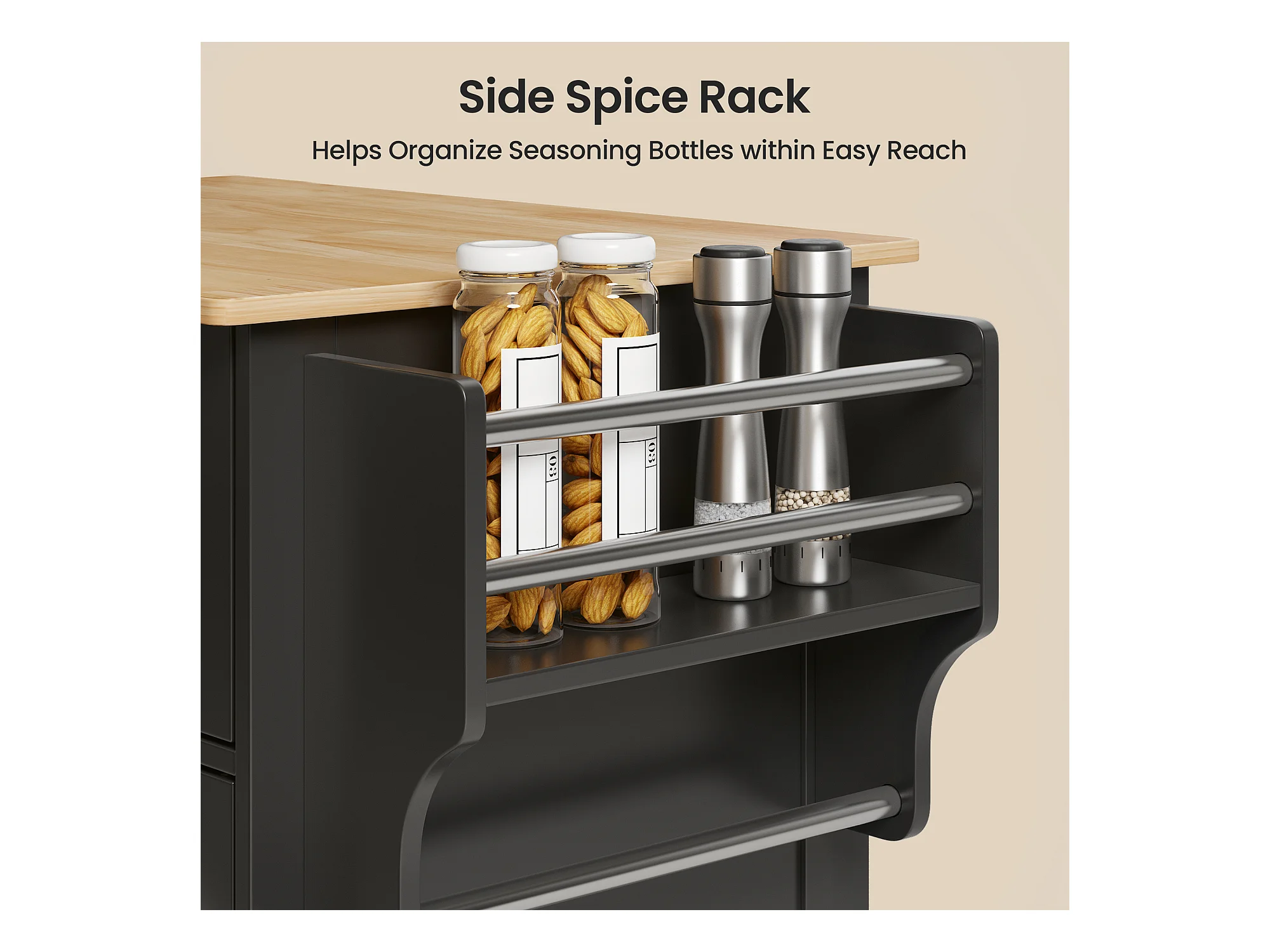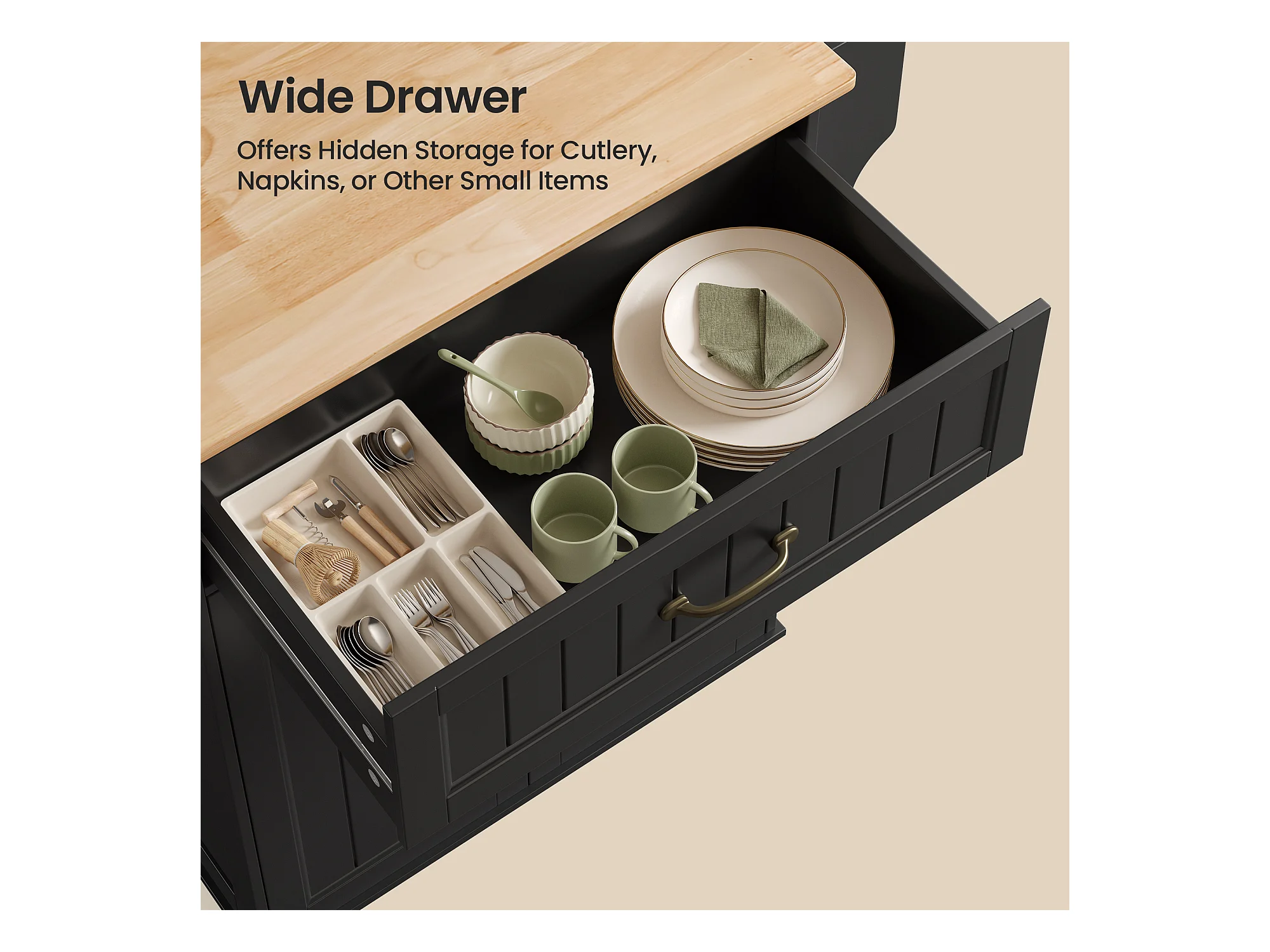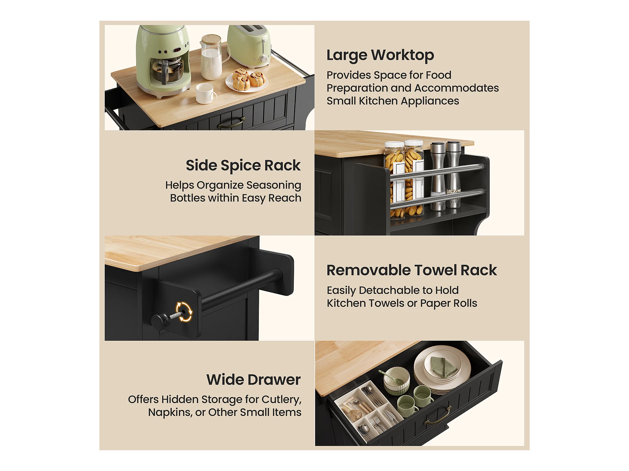 Desserte de cuisine (135x74x90.8cm)multifonction avec plan de travail en bois, rangement et roulettes - Noir