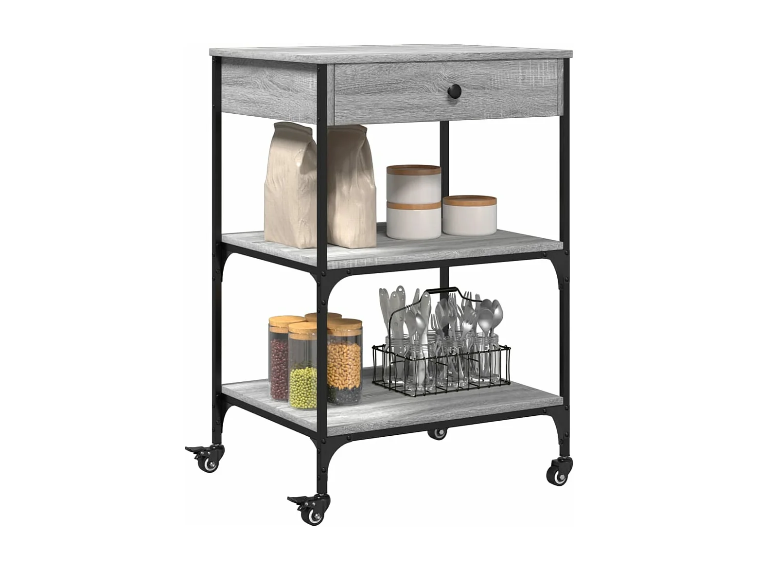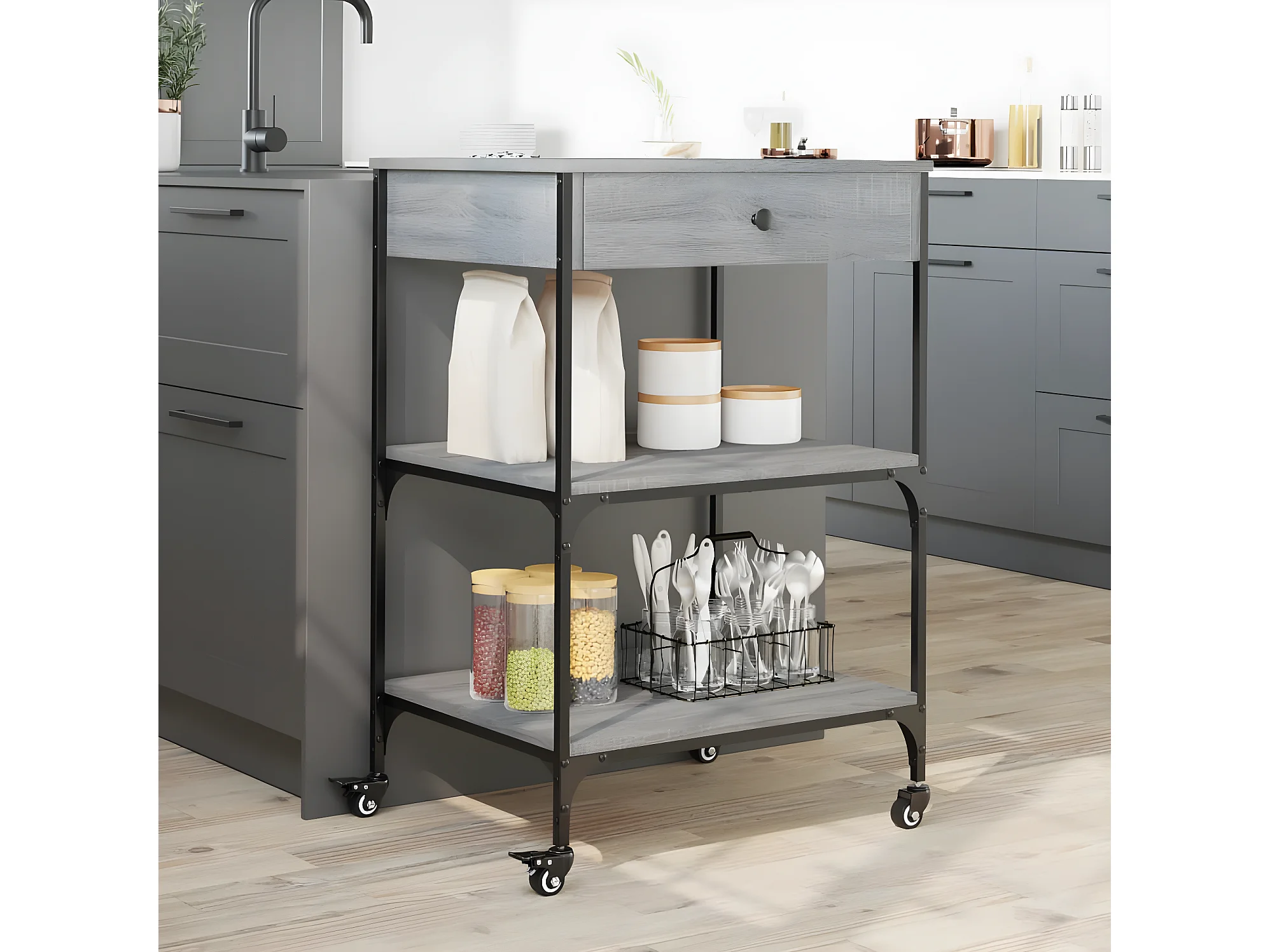 Chariot de cuisine sonoma gris 60x48x89,5 bois d'ingénierie