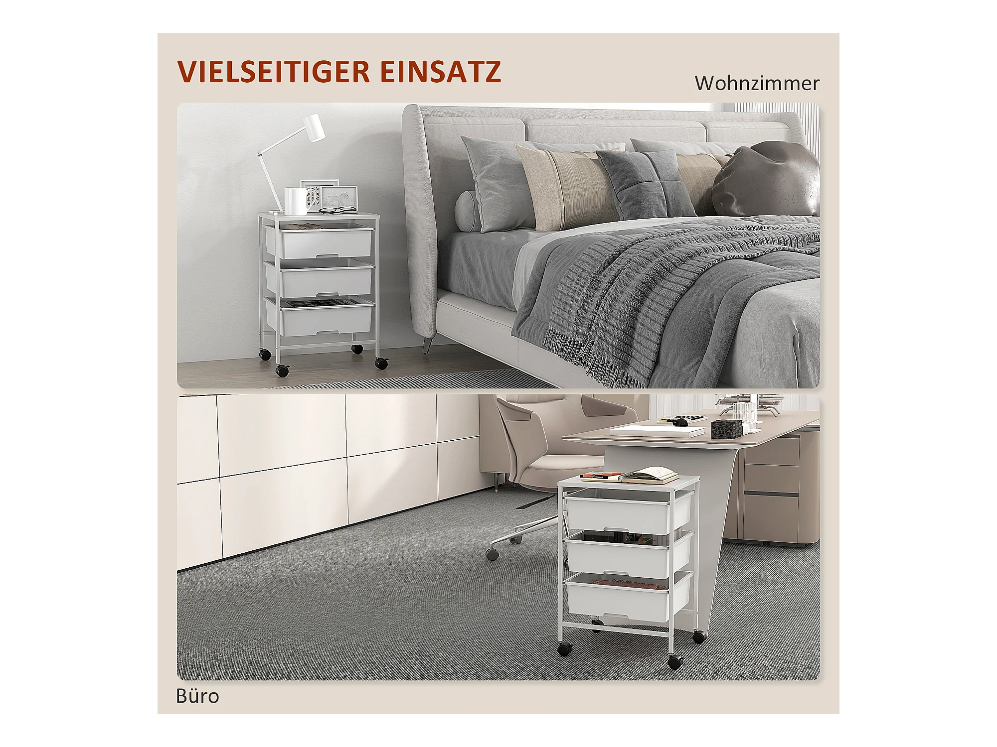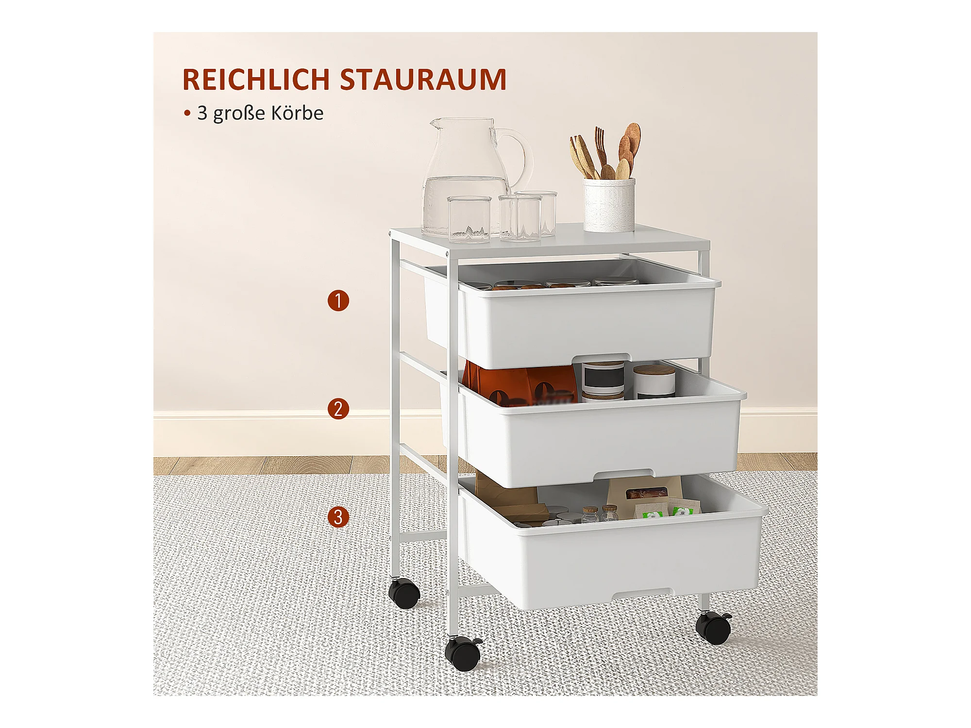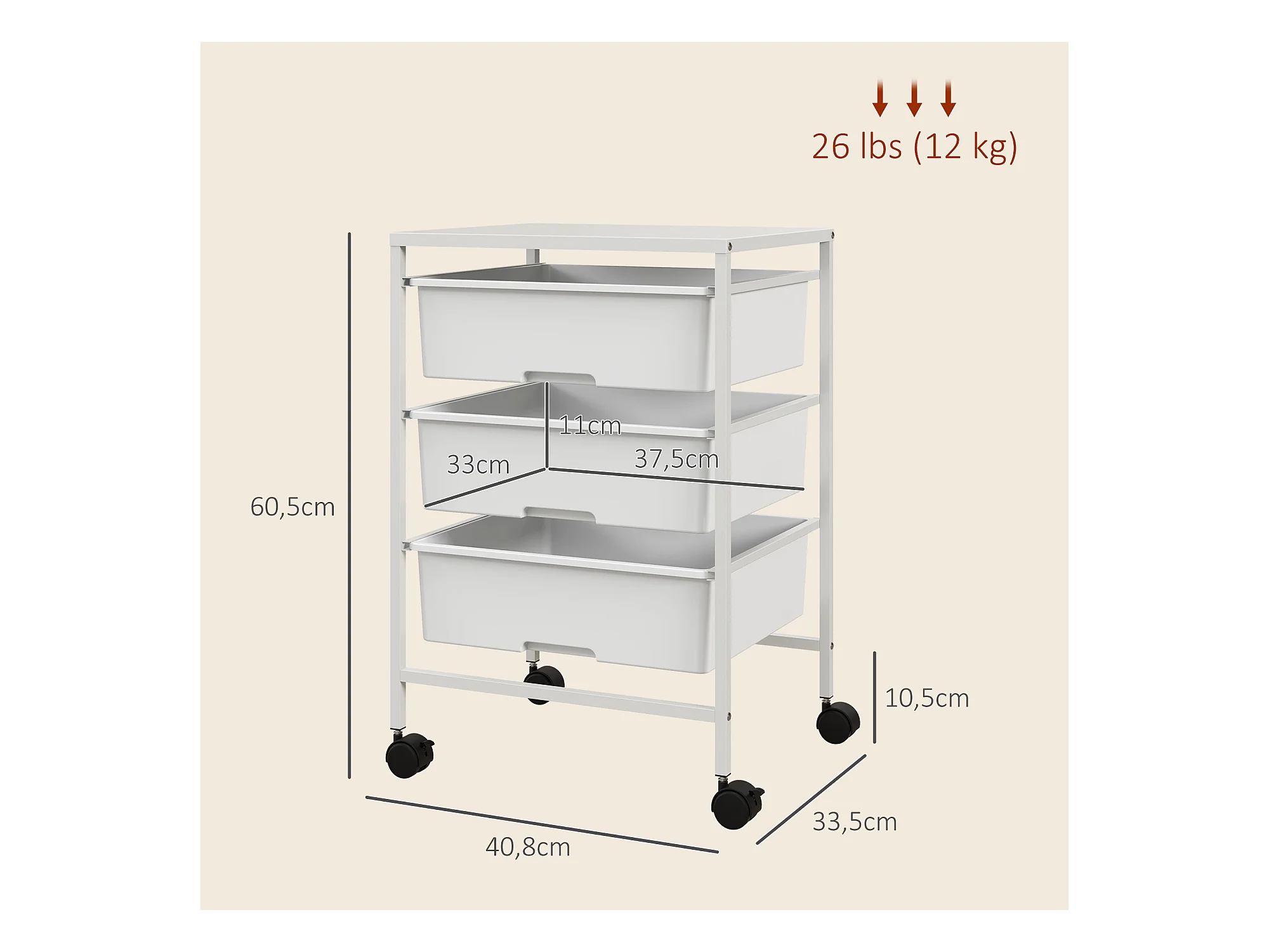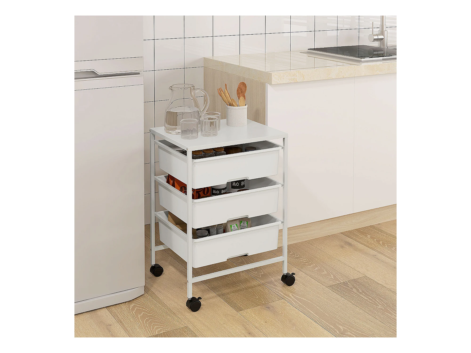 Chariot de service avec 3 étagères, à roulettes, en plastique, blanc (40.8x33.5x60.5 cm)