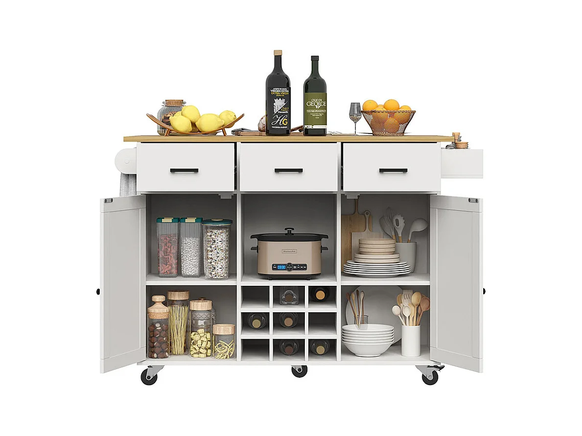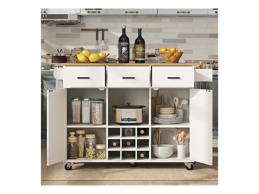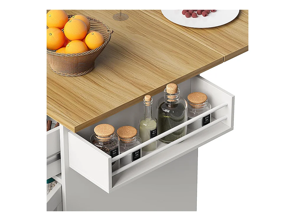 Chariot de service cuisine amovible plan de travail porte-serviettes étagère à épices plateau bois blanc