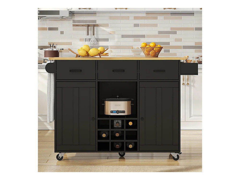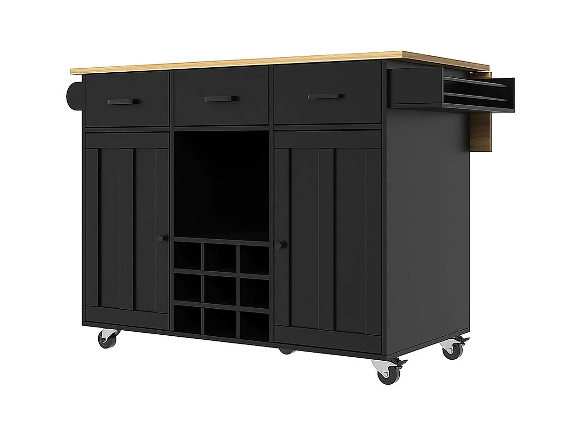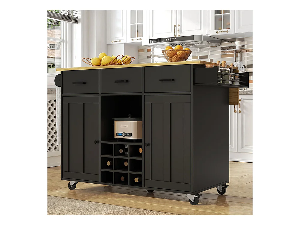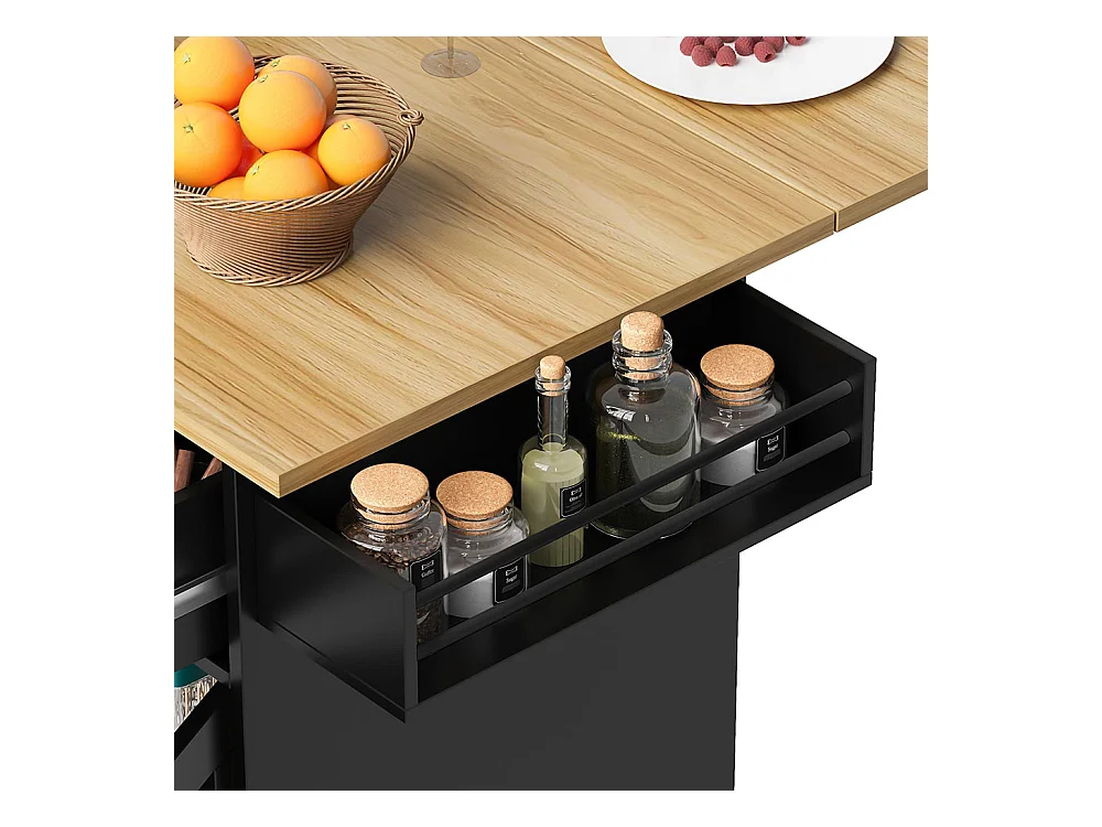 Chariot de service cuisine amovible plan de travail porte-serviettes étagère à épices plateau bois noir