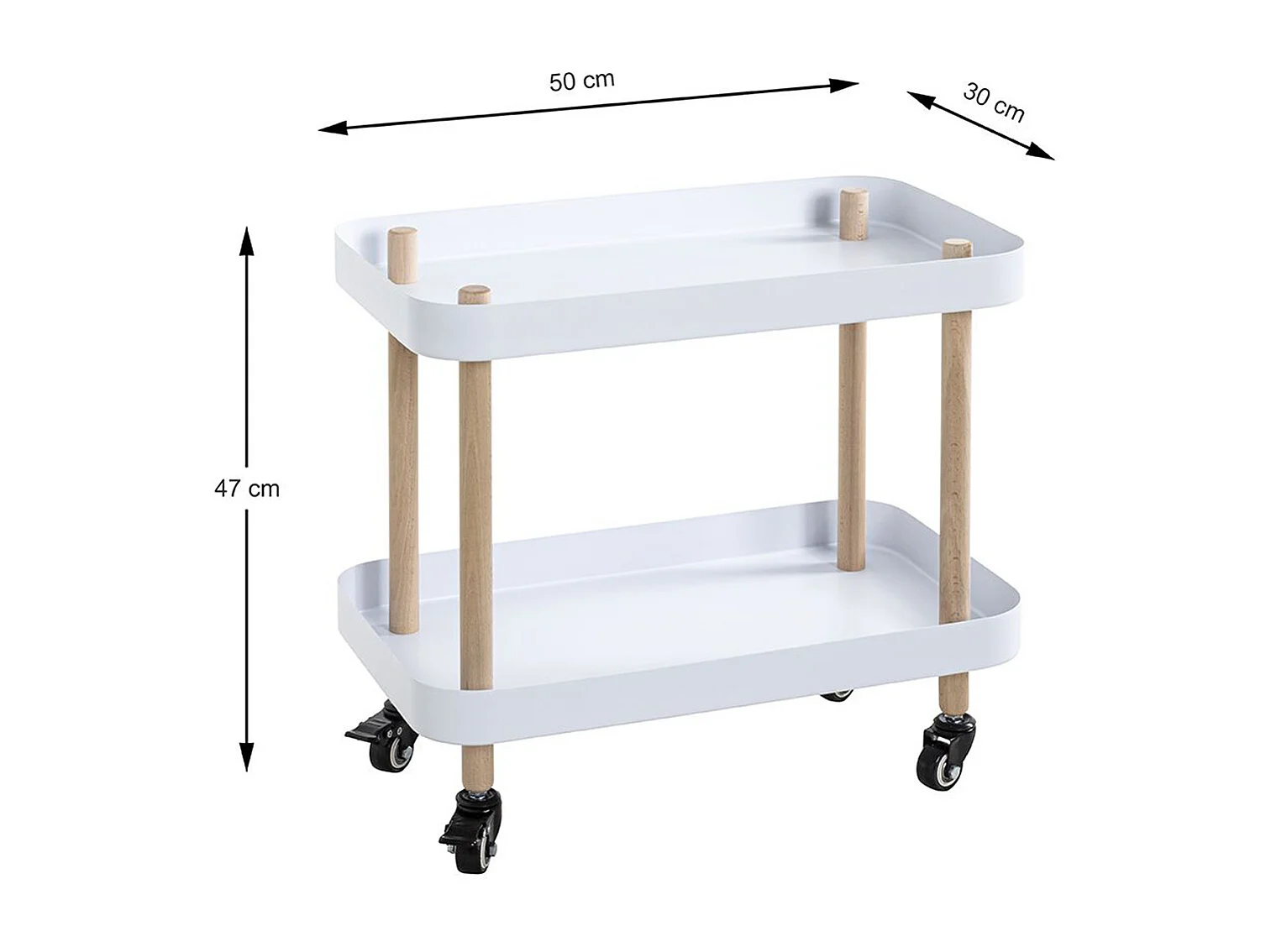 Chariot de service, desserte en bois coloris naturel et métal blanc -longueur 50 x profondeur 30 x hauteur 47 cm
