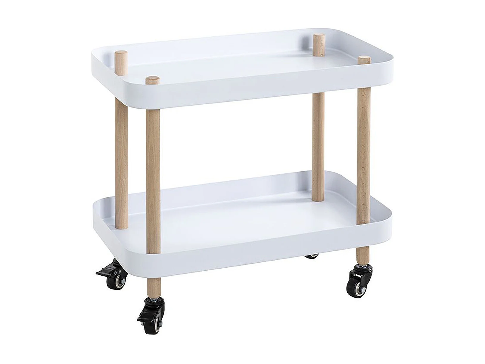 Chariot de service, desserte en bois coloris naturel et métal blanc -longueur 50 x profondeur 30 x hauteur 76 cm