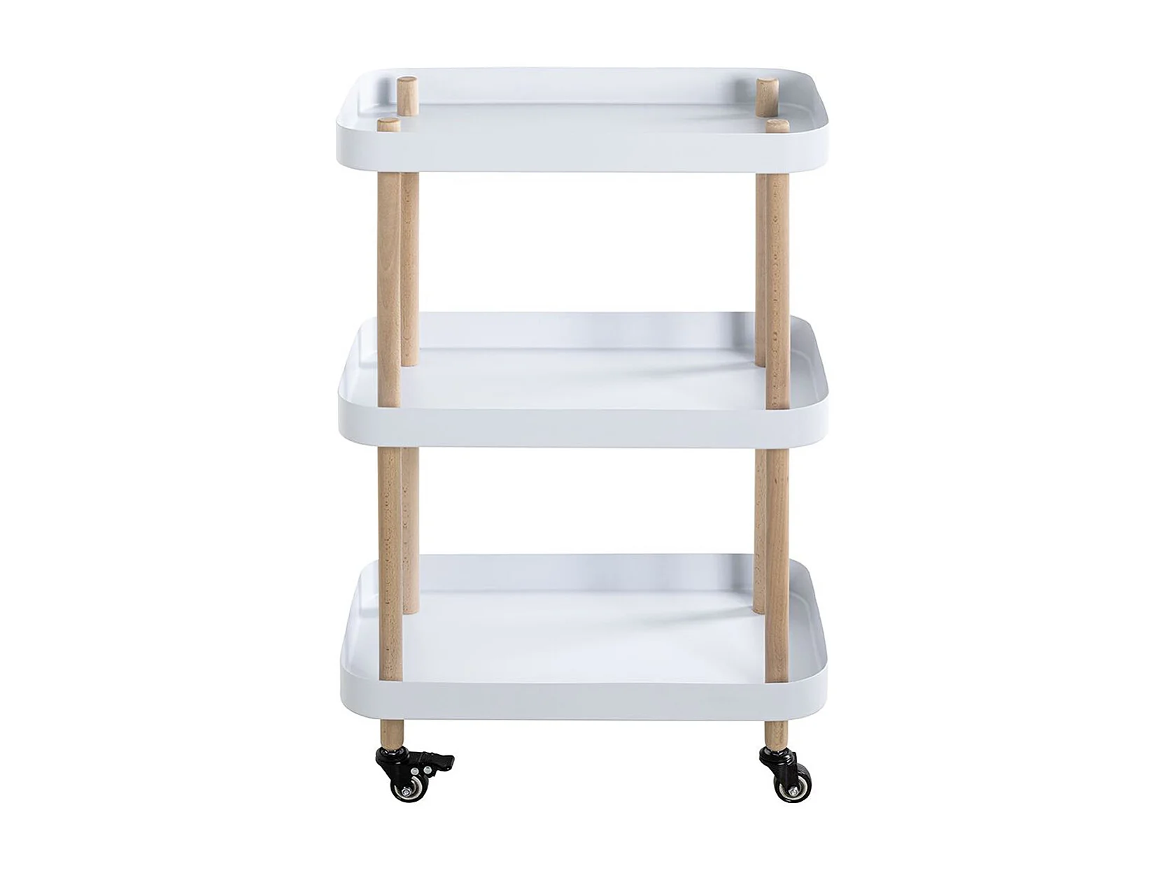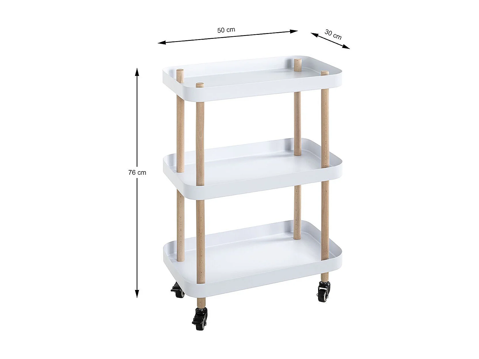 Chariot de service, desserte en bois coloris naturel et métal blanc -longueur 50 x profondeur 30 x hauteur 76 cm