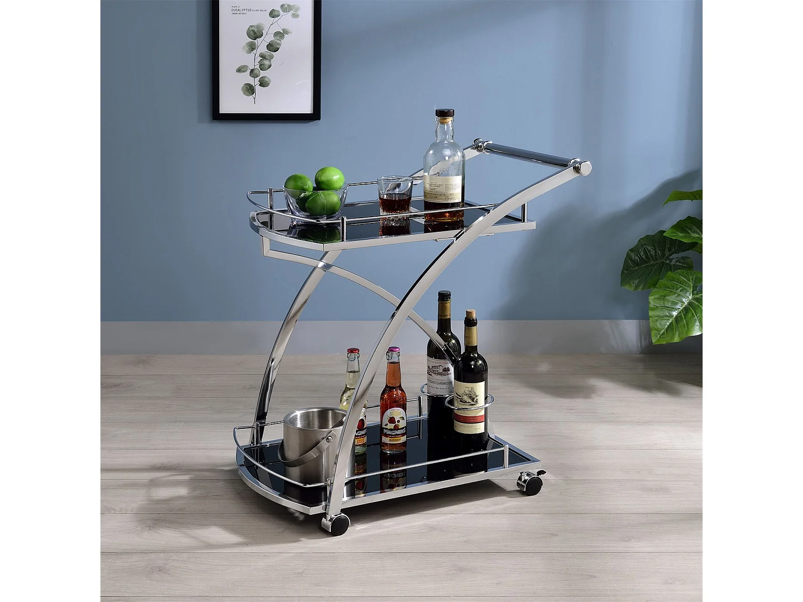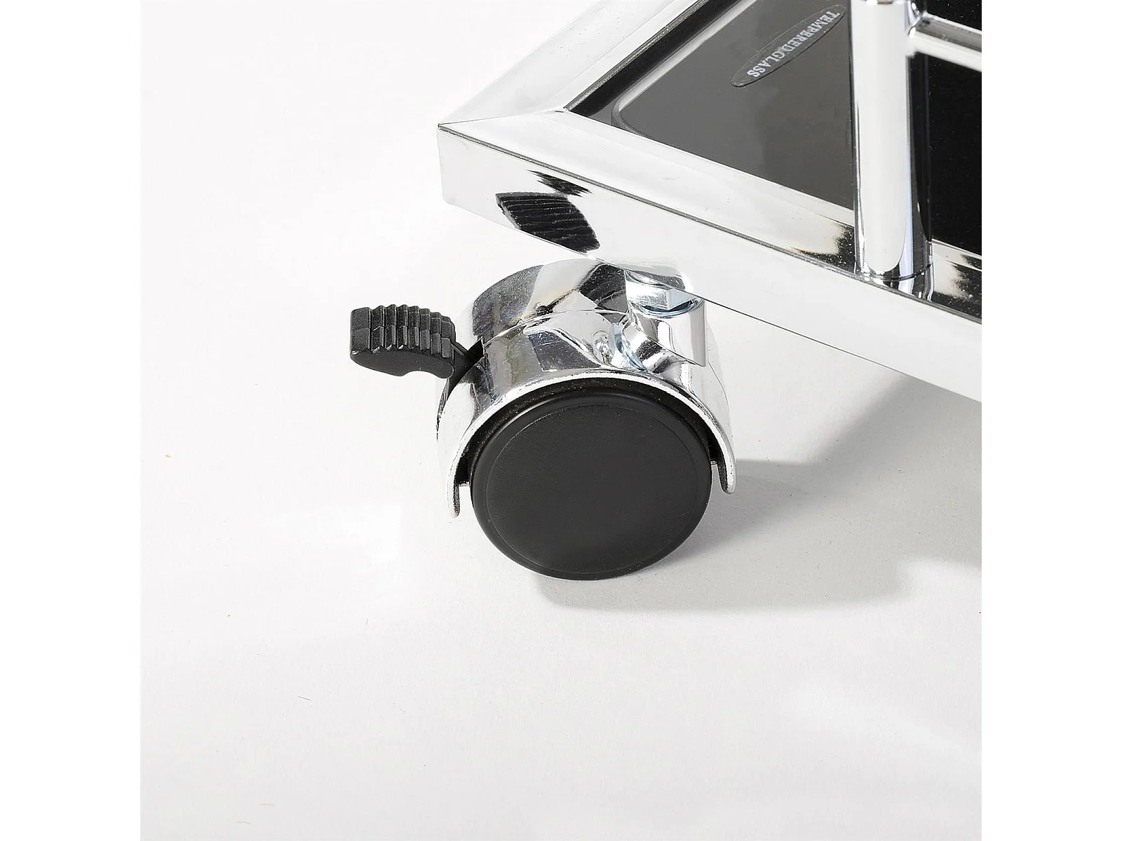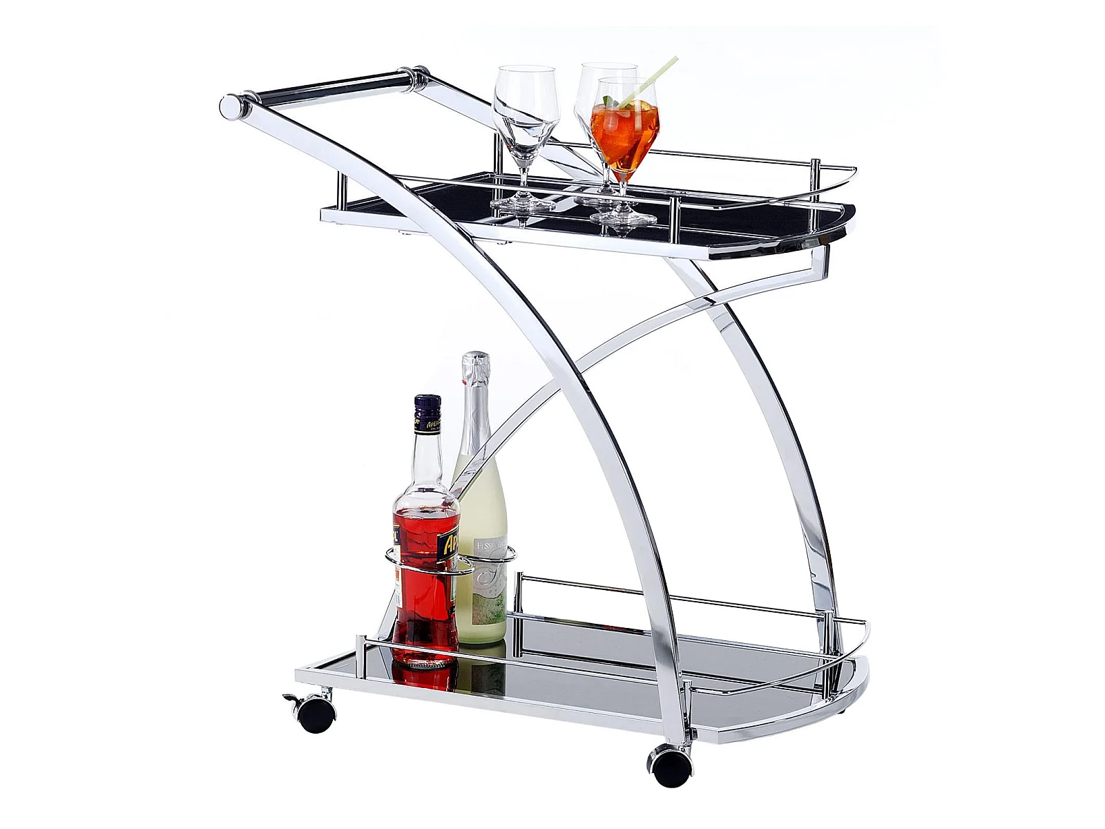 Chariot de service EVO chariot à thé et boisson desserte de cuisine à roulettes en métal chromé, 2 plateaux en verre trempé noir