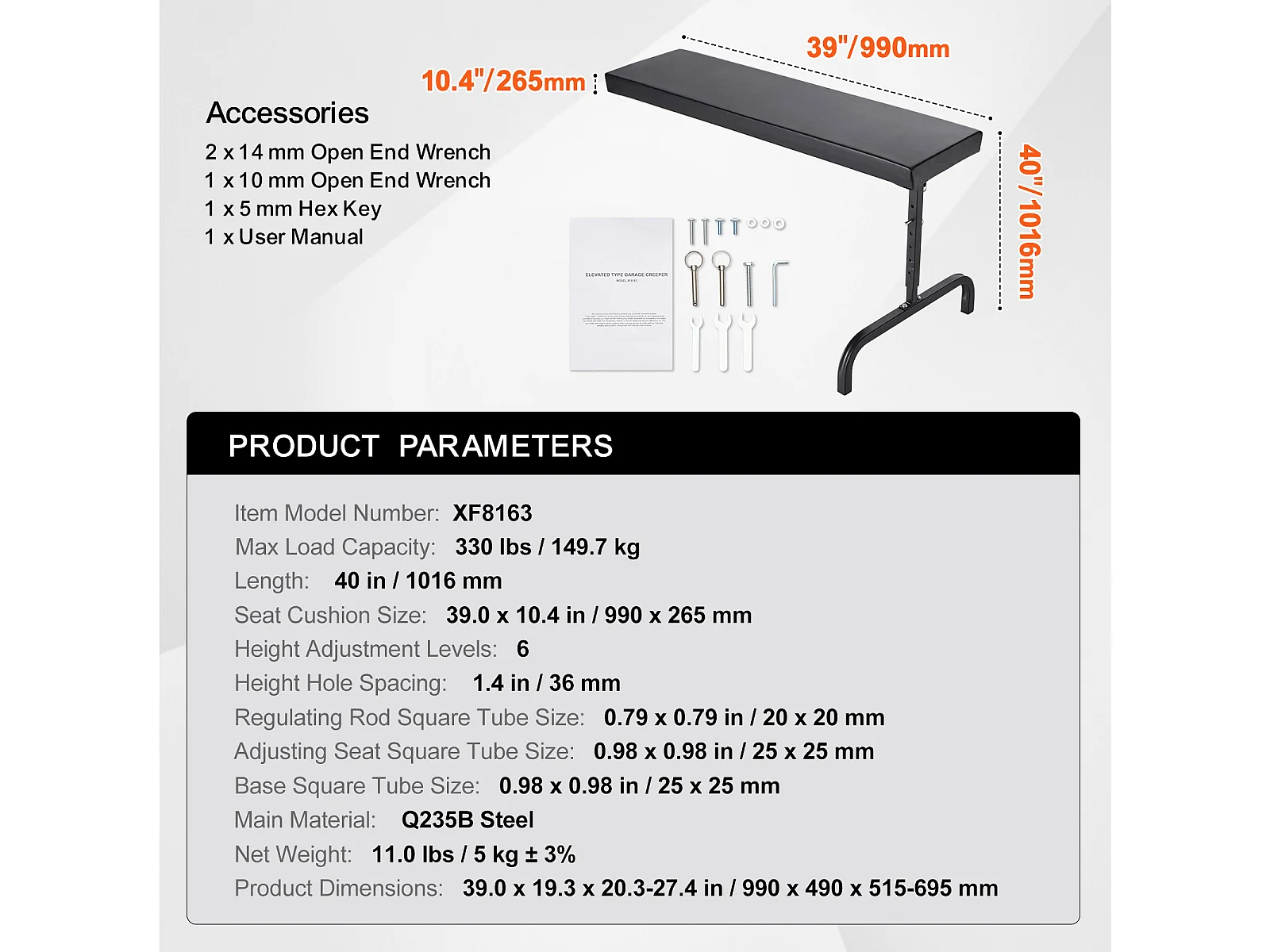 Chariot de Visite SucceBuy 102cm sous le Tableau de Bord Creeper 150kg Roulant, Hauteur Réglable