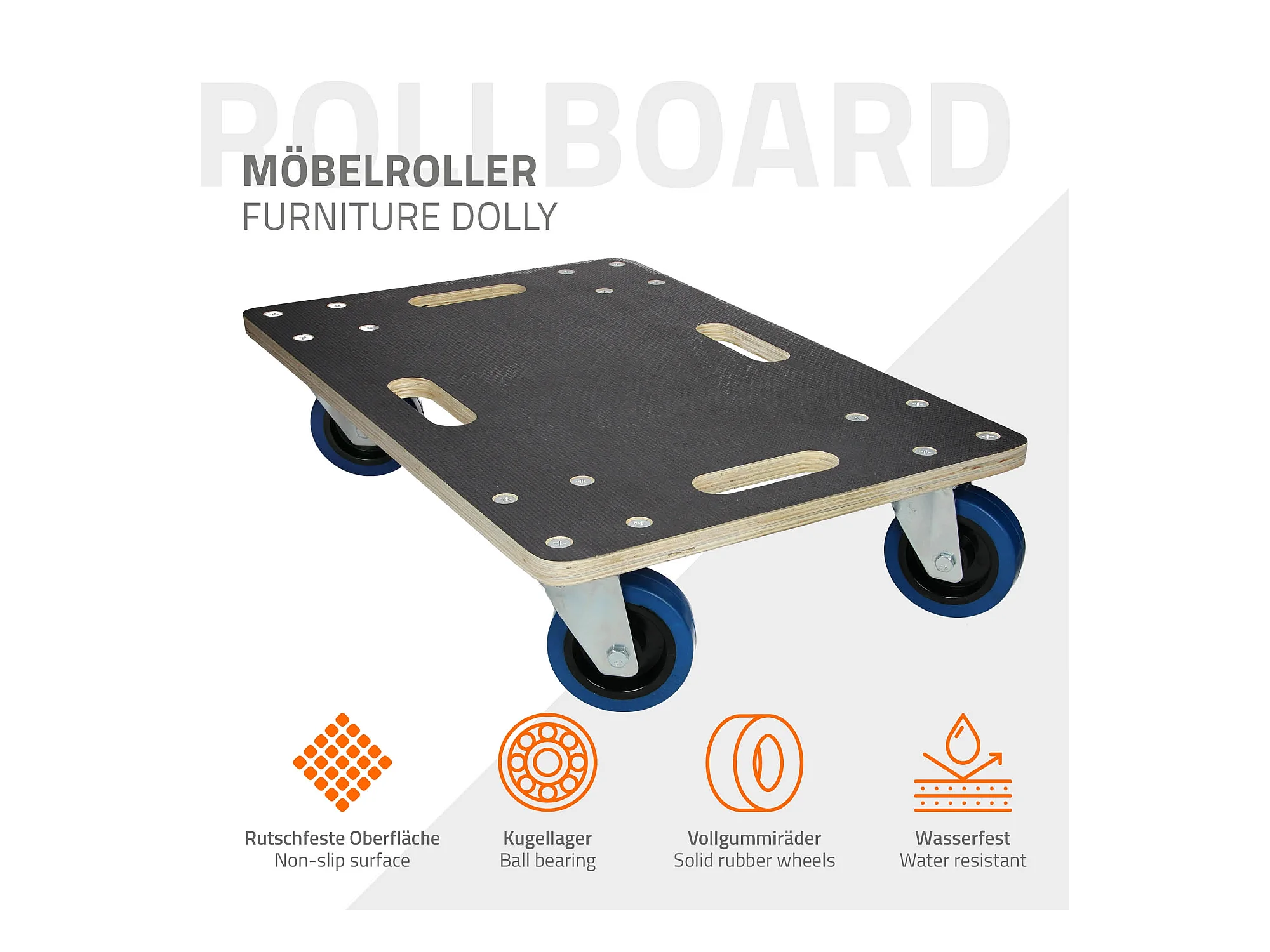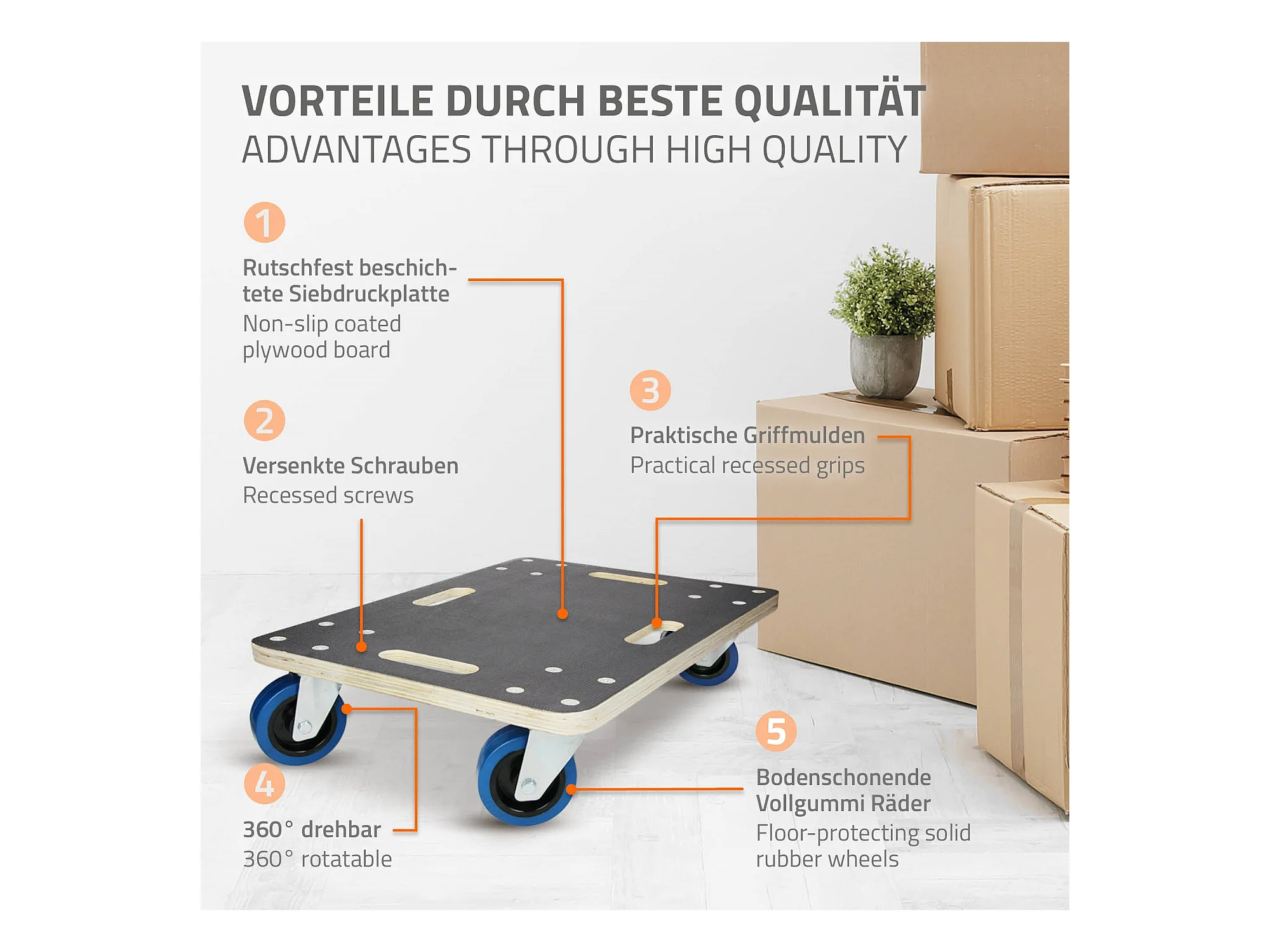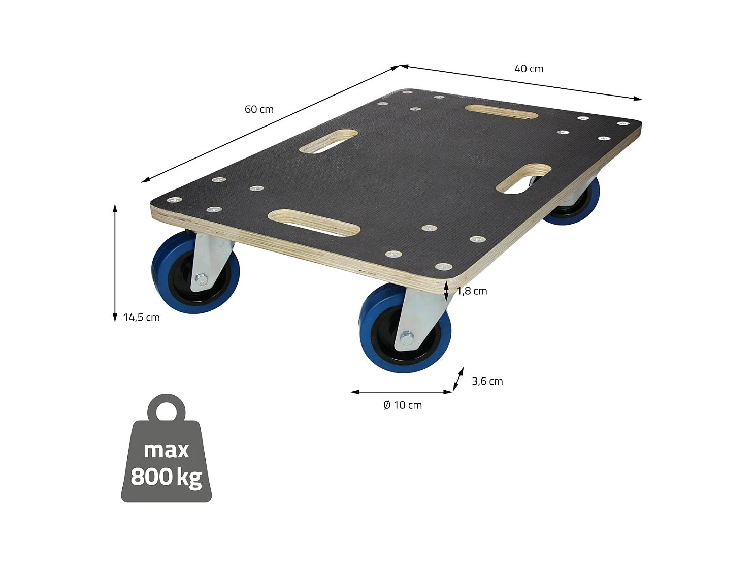 Chariot de transport 40x60 cm capacité 800 kg plateau roulant contreplaqué surface antidérapante roulettes en PP idéal pour meubles et déménagement