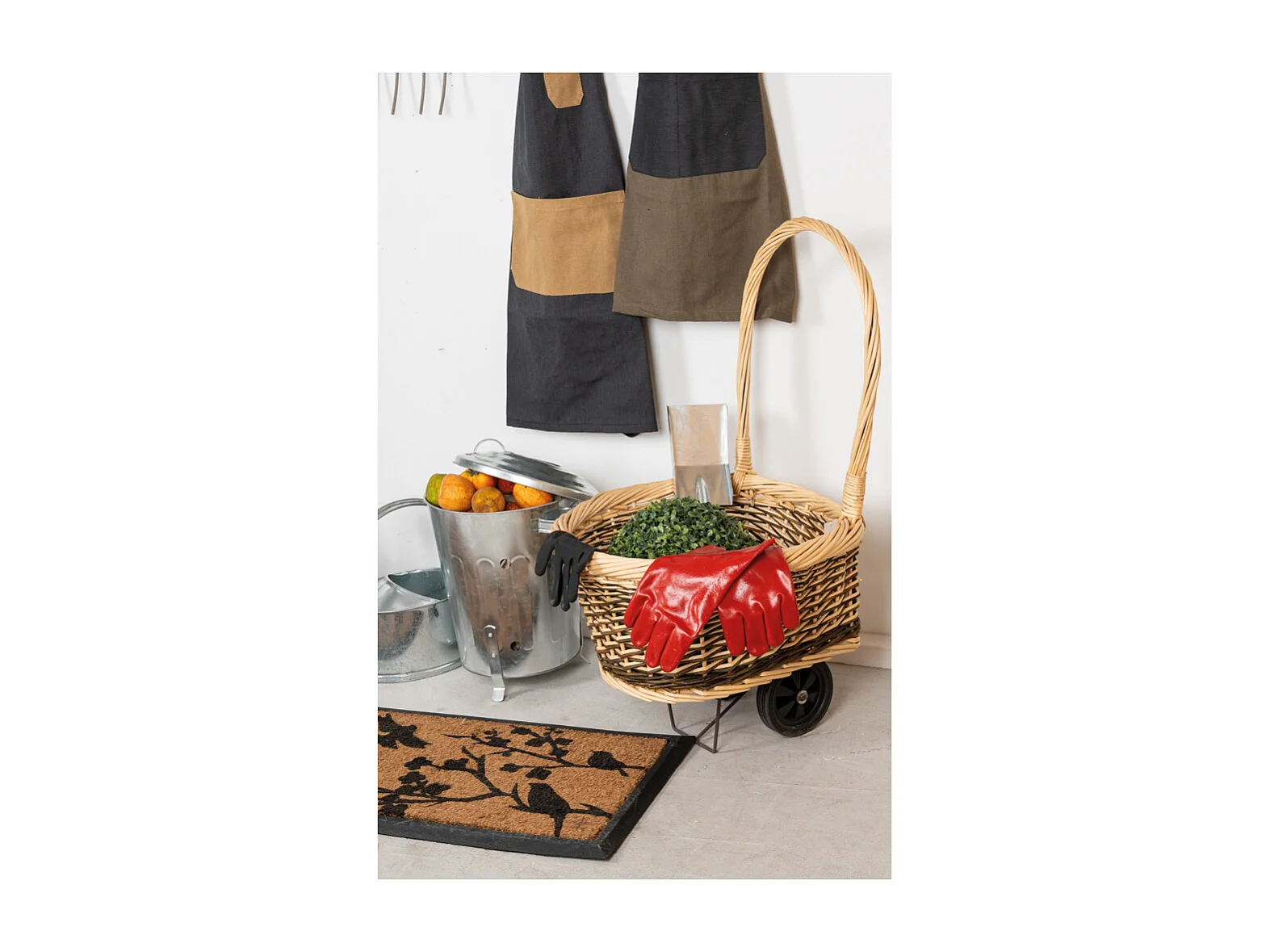 Chariot à bûches en osier sur roulettes 1