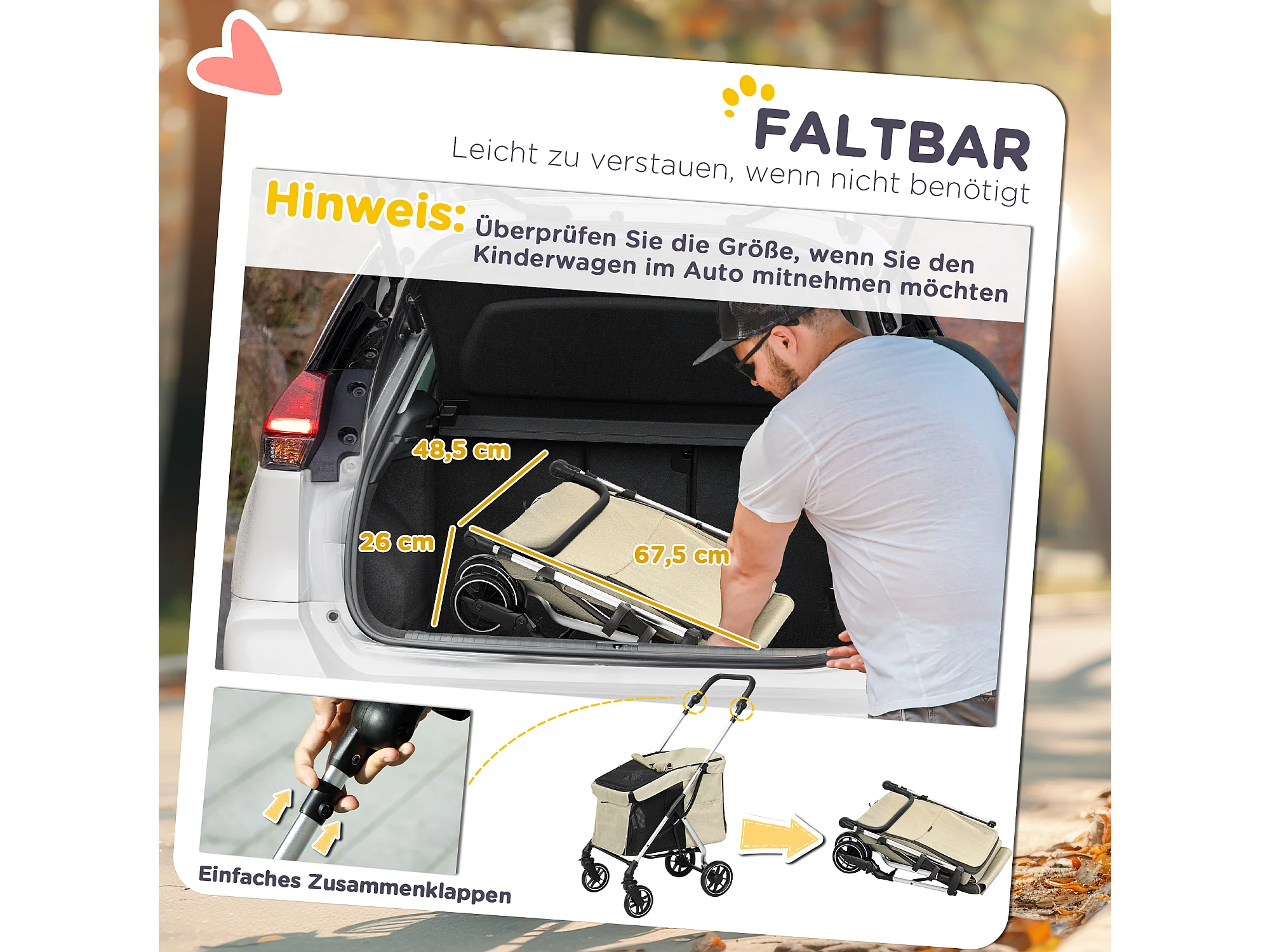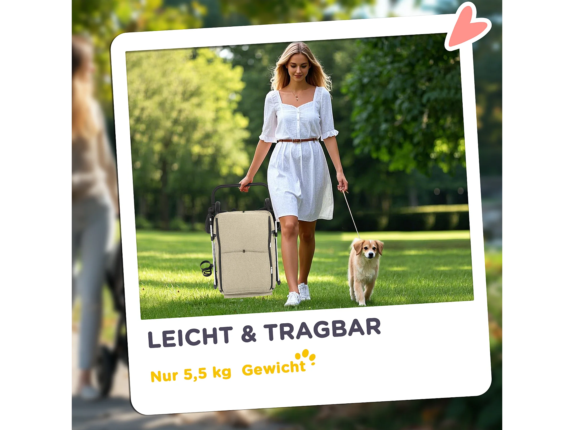 Chariot pliable pour chien et chat en aluminium, léger et résistant, polyester, kaki (80x48.5x106cm)