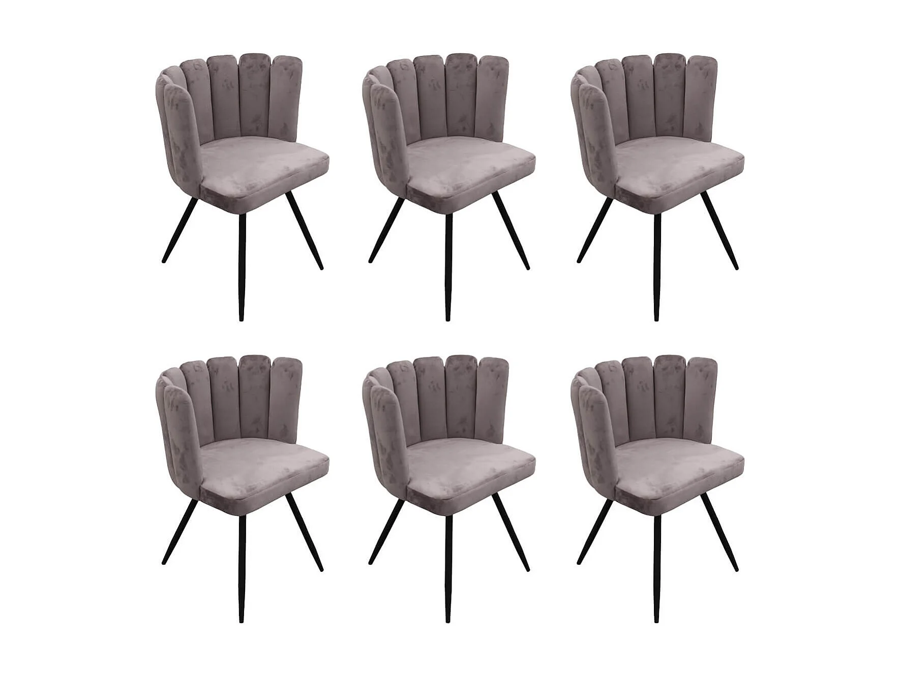 CHARLOTTE - Lot de 6 Chaises Velours Gris