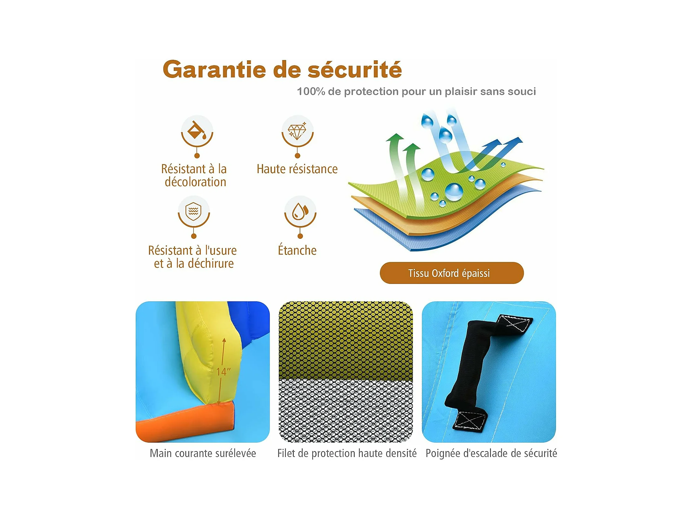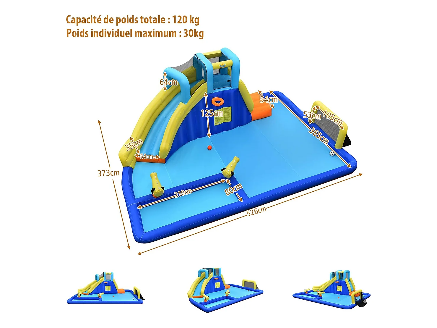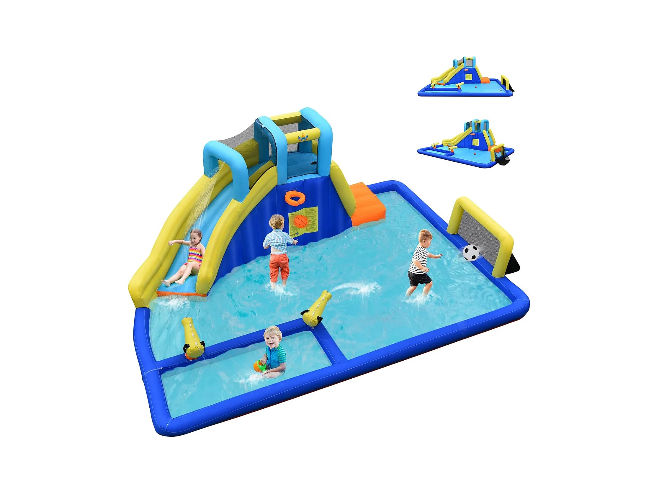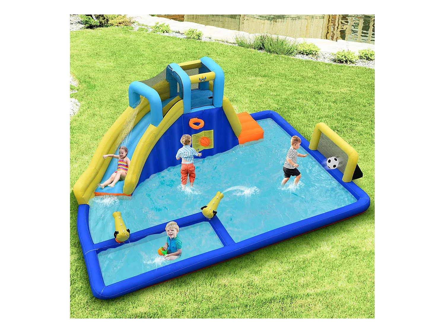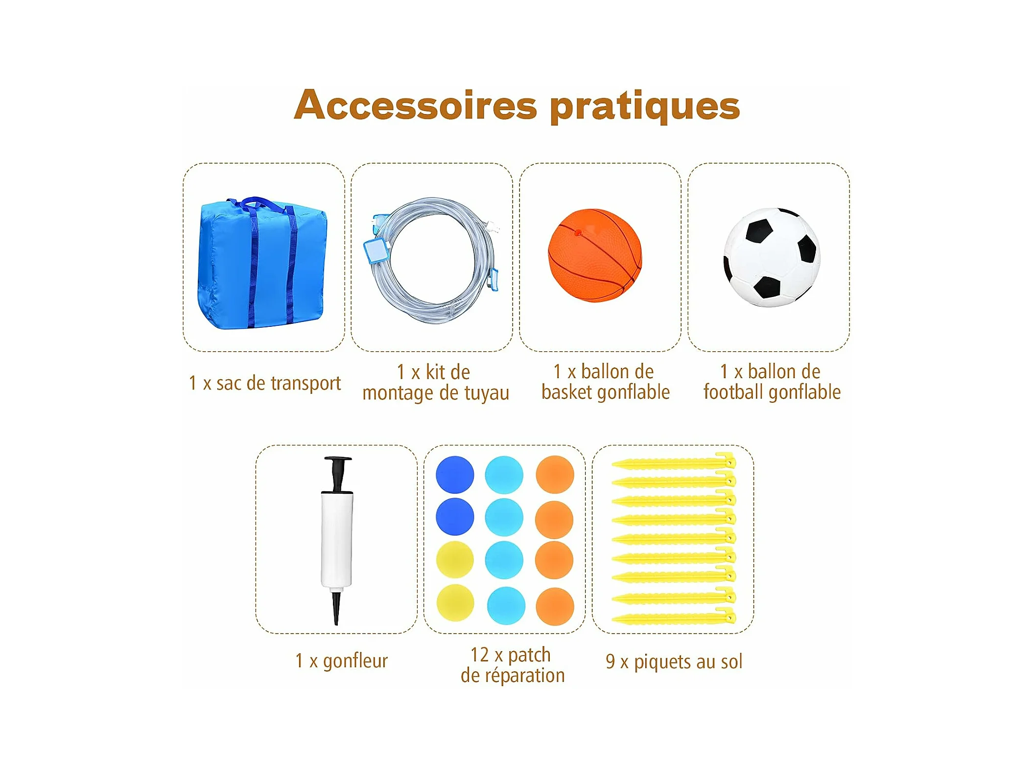 6 en 1 Château Gonflable Aquatique avec Piscine et Toboggan, Maison de Rebond Gonflable avec Panier de Basket, Mur d’Escalade, Pataugeoire pour Enfants de 3 Ans+