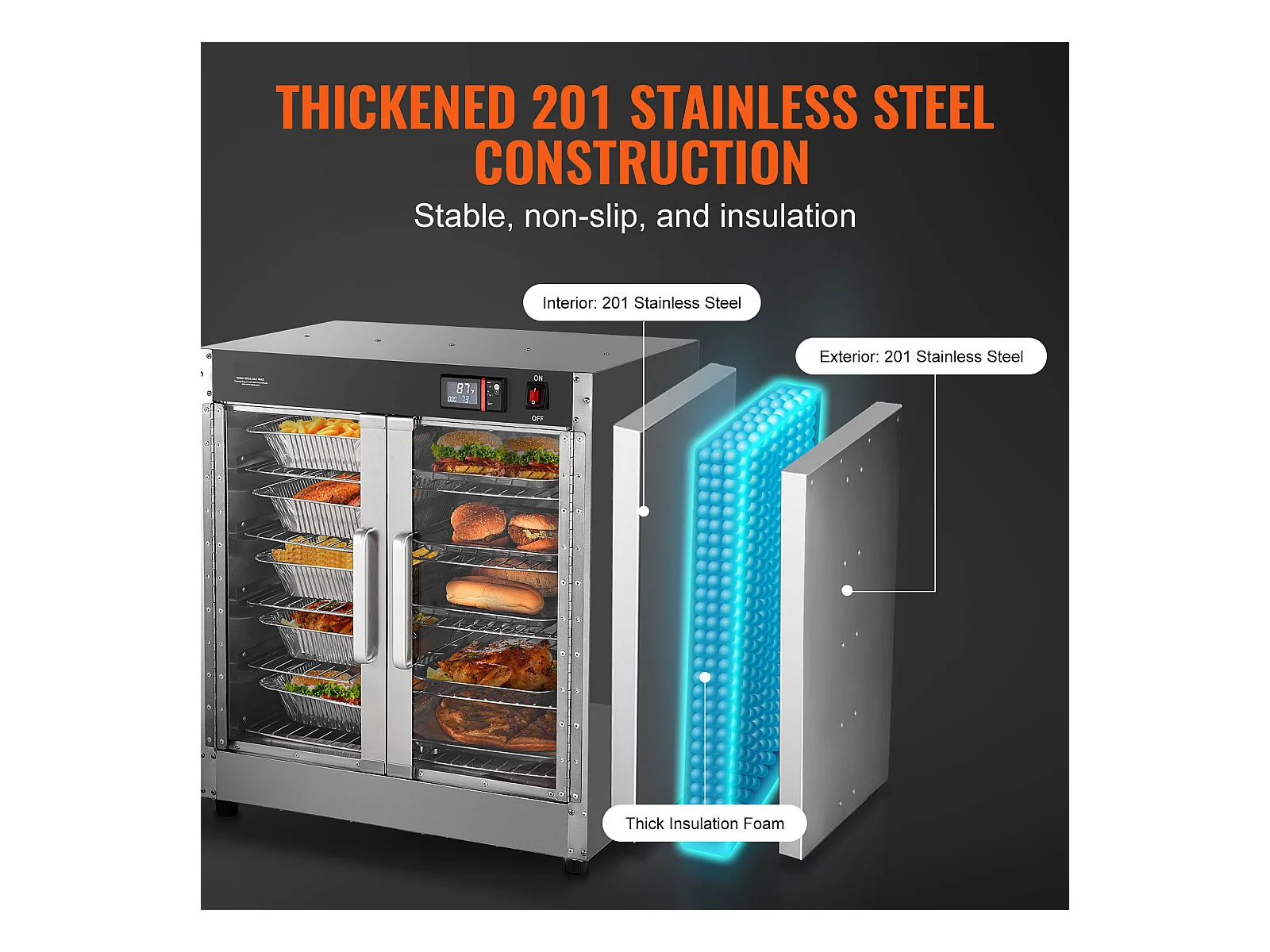 Chauffe-plats Industriel à 4 Niveaux SucceBuy, Armoire Chauffante pour Concession avec Bac à Eau, Double Porte pour Cantine