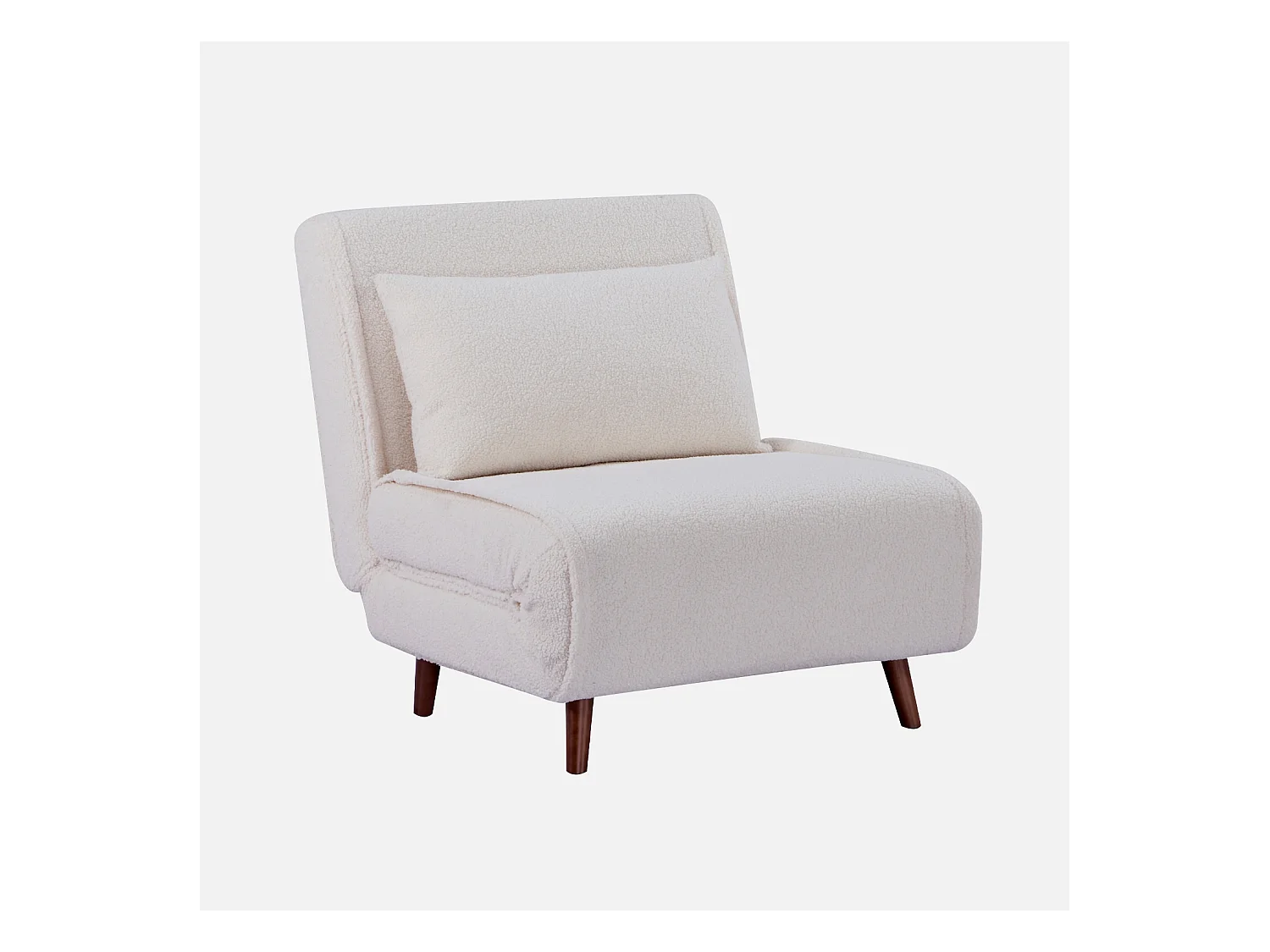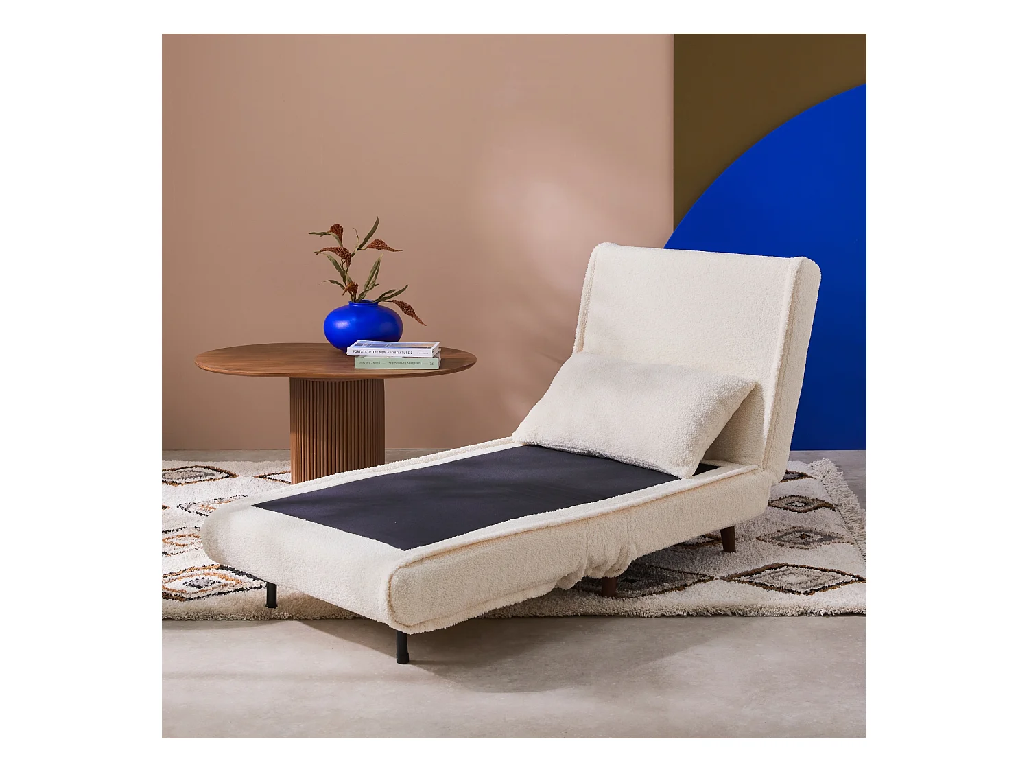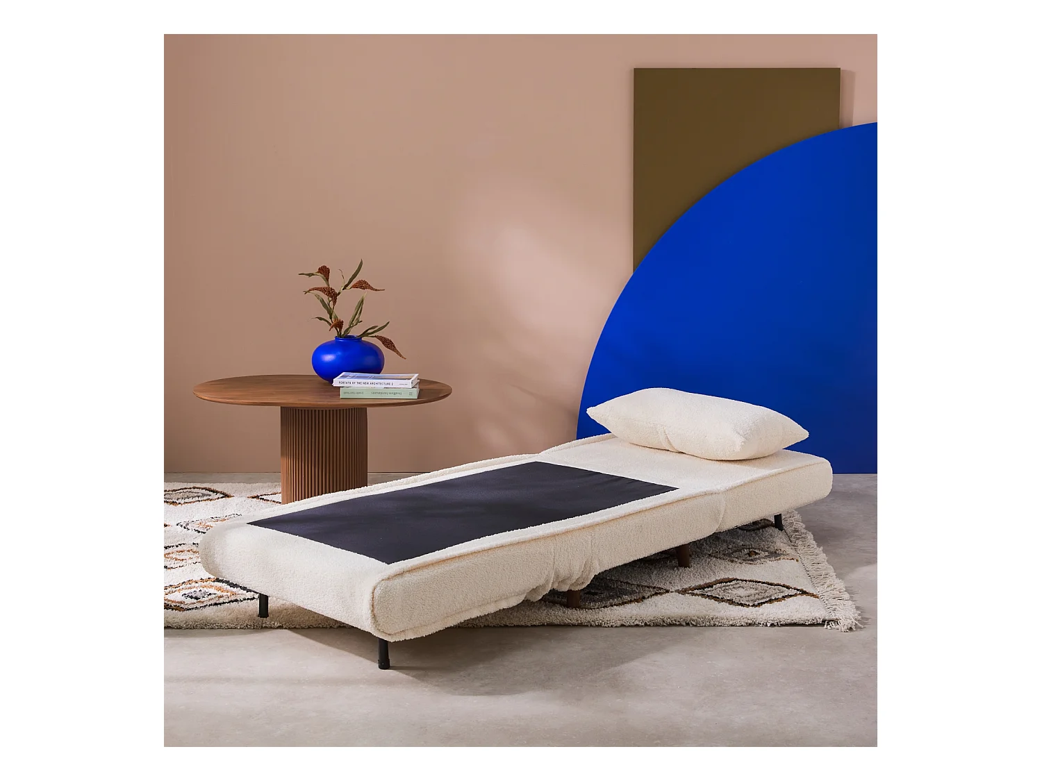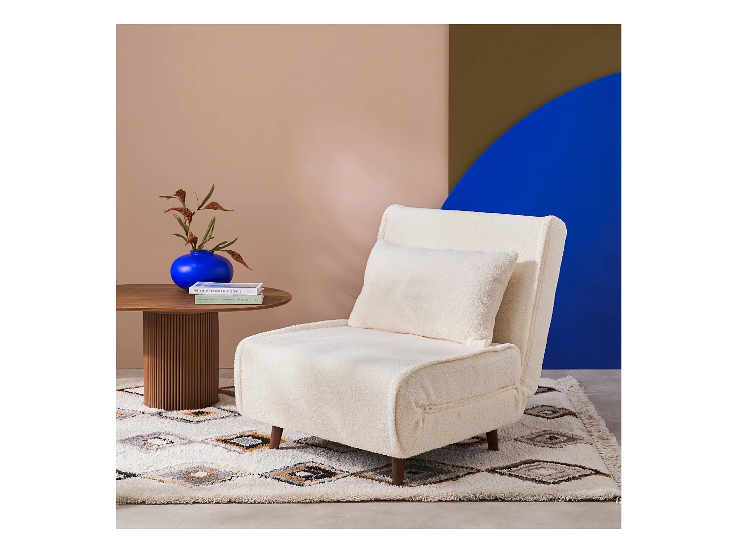 Chauffeuse convertible bouclette piétement bois 1 place crème Guest