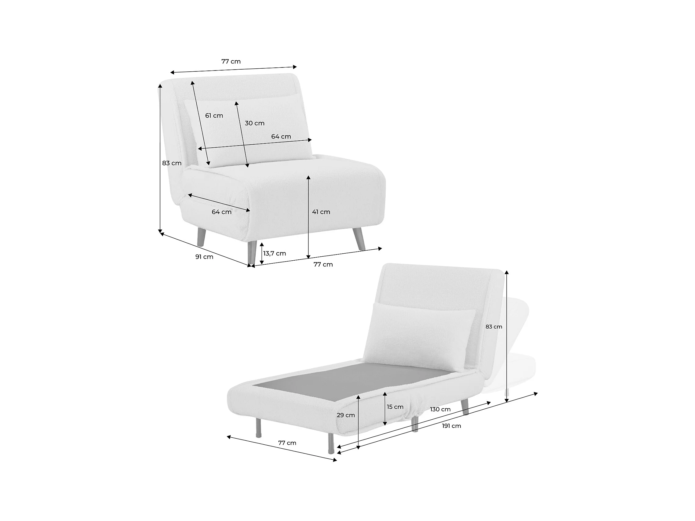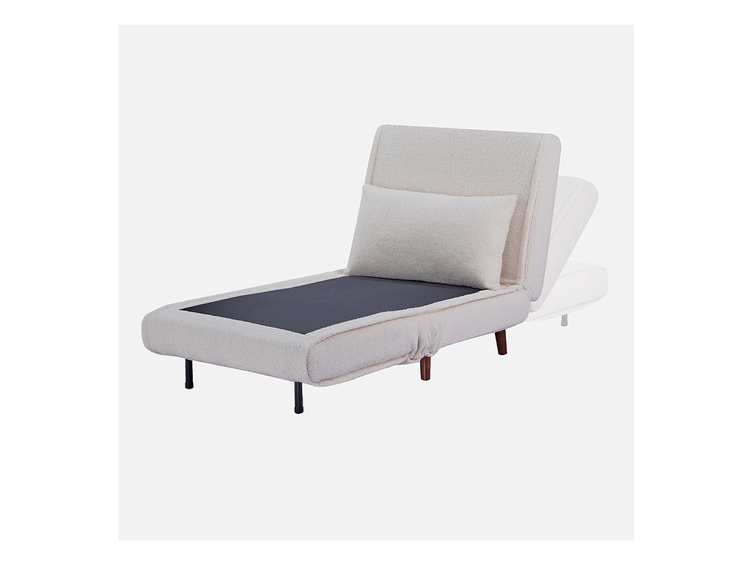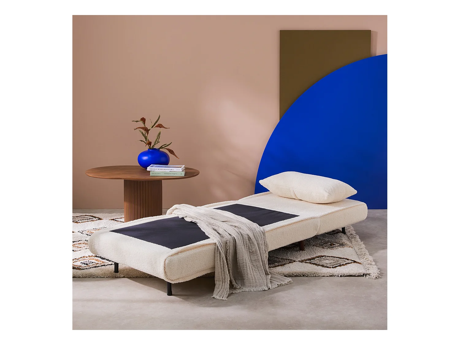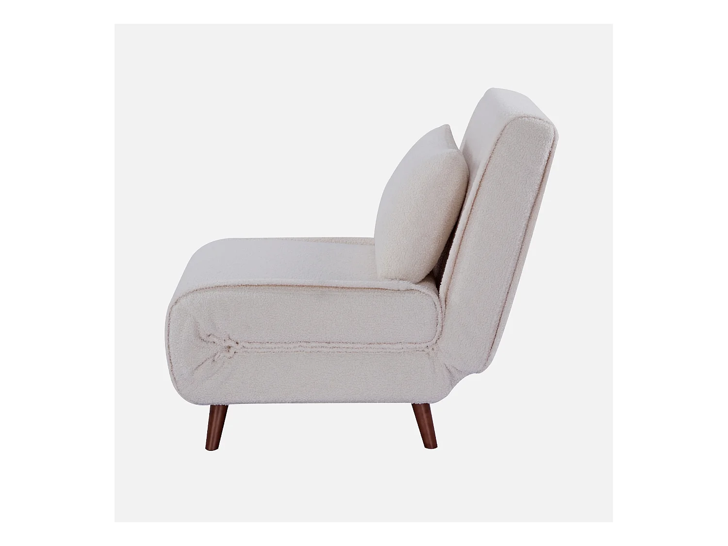 Chauffeuse convertible bouclette piétement bois 1 place crème Guest