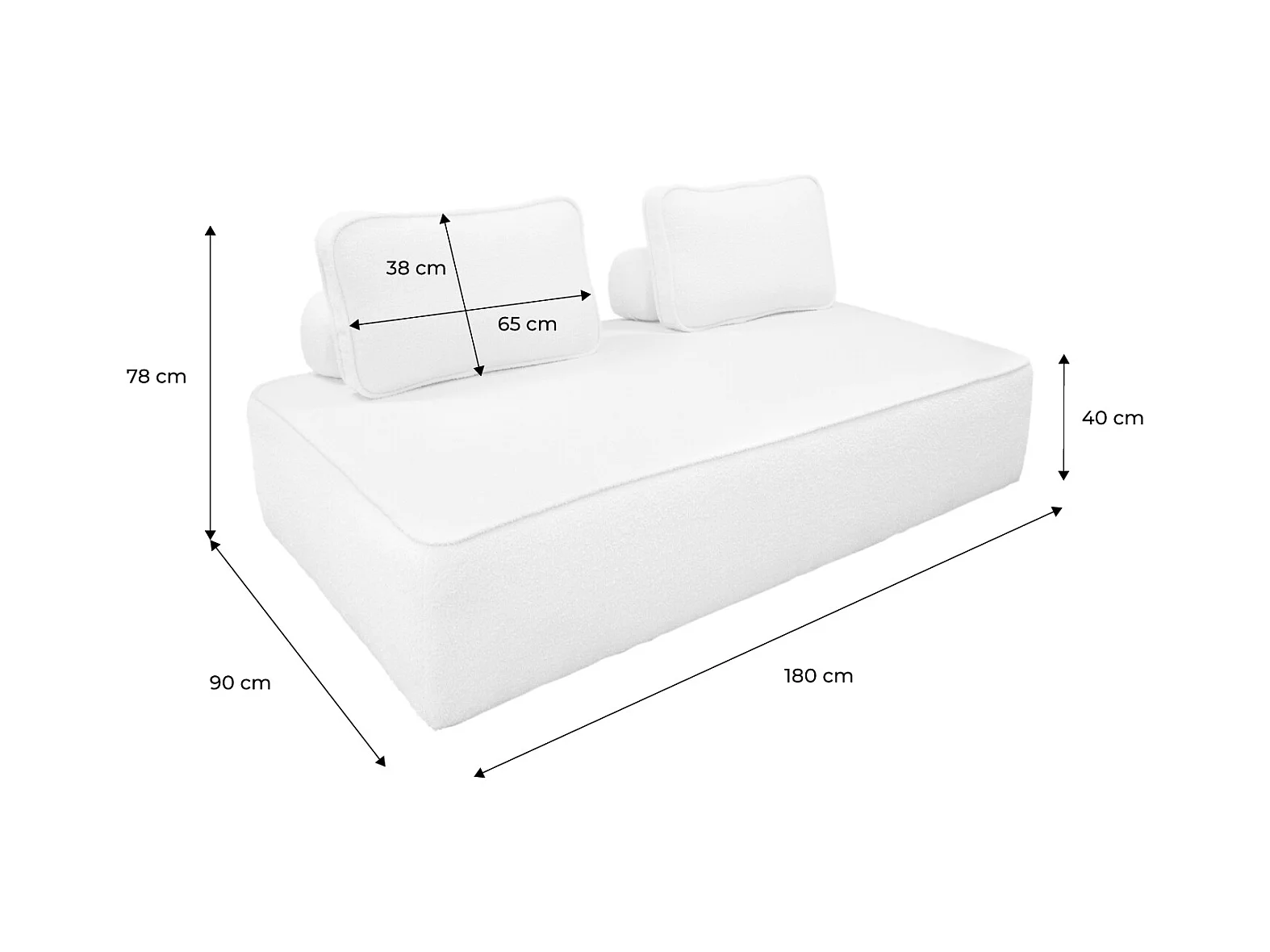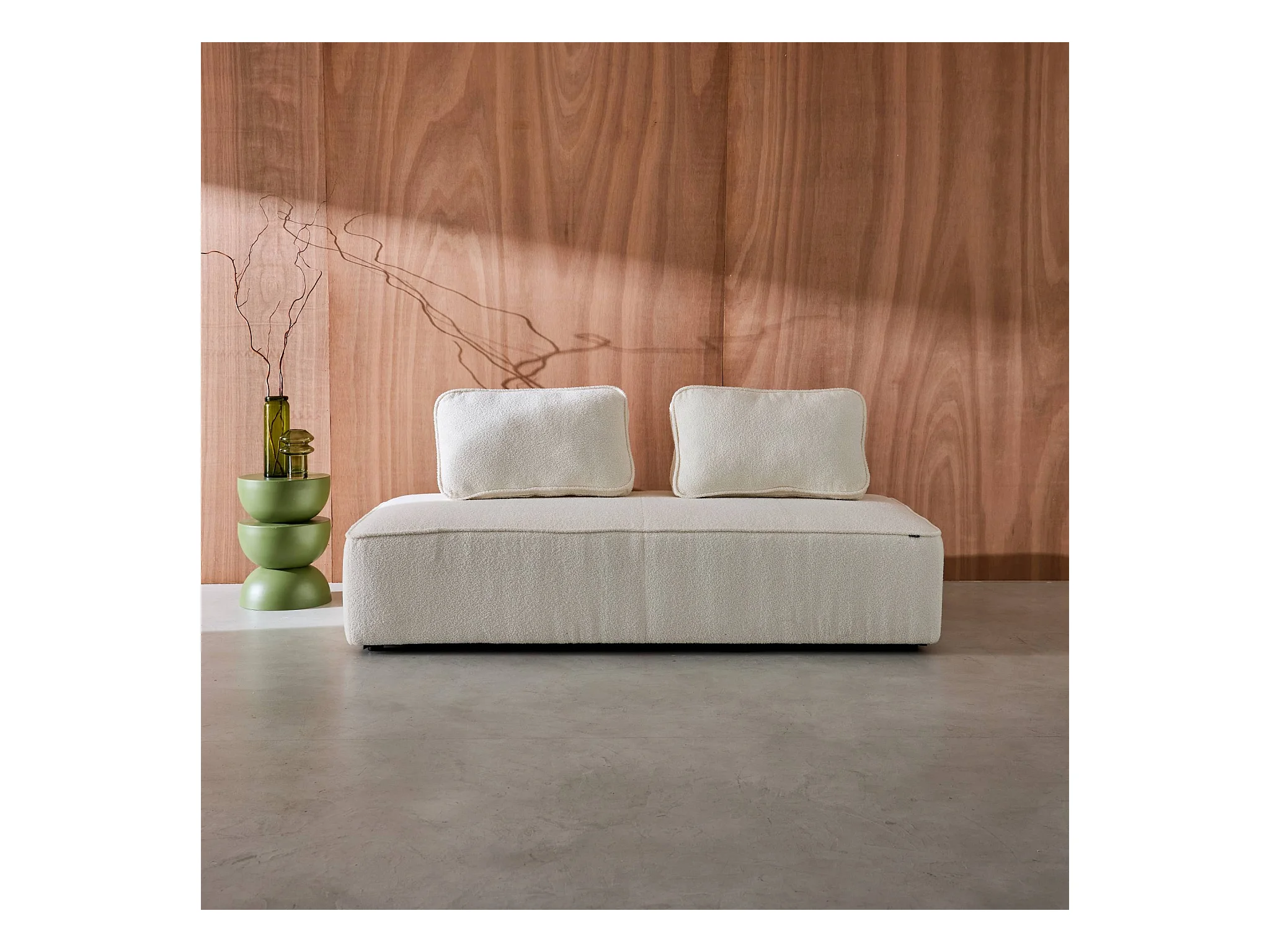 Chauffeuse pour canapé modulable tissu bouclette crème 2 places Bao. L 180 x P 90 x H 74cm
