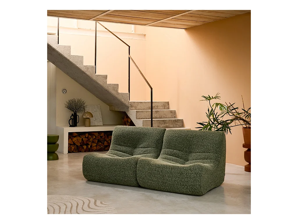 Chauffeuse tissu effet alpaca 2 places. kaki. style contemporain. L 91 x P 105 x H 72cm