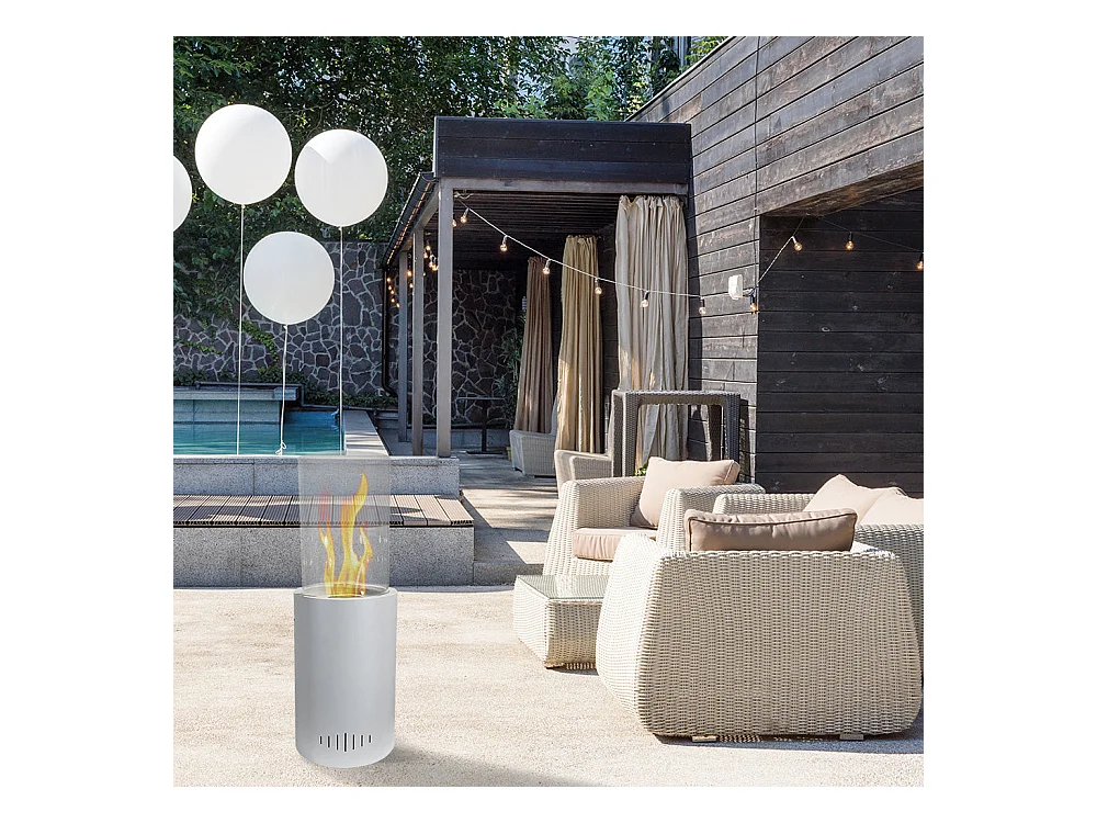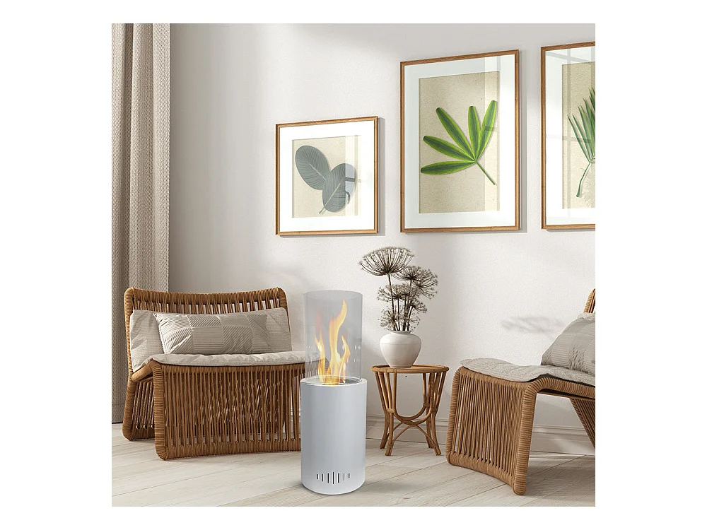Cheminée à Bioéthanol de Sol pour Intérieur Extérieur Torcello Blanc 27x27x82
