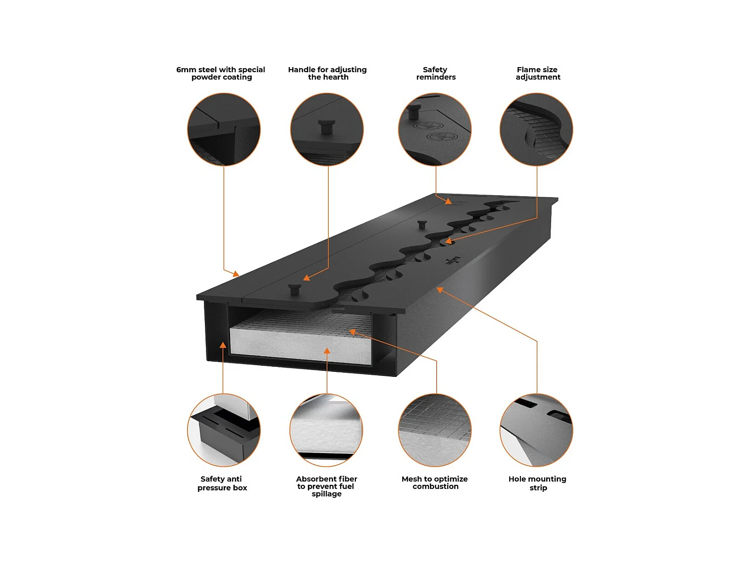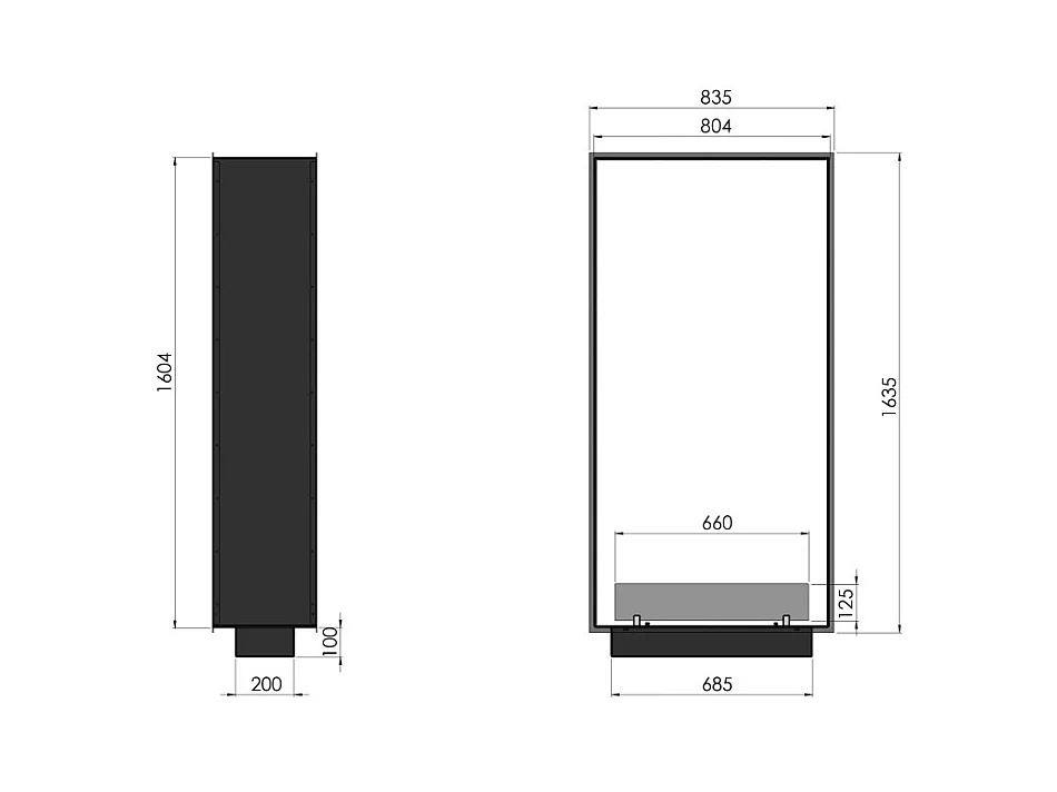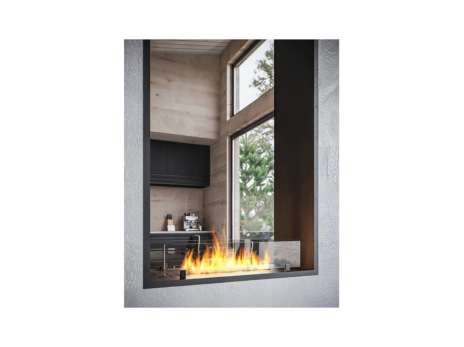 Cheminée bioéthanol 2Side 1600 Slim Vert encastrable à deux façades - Noir mat, avec vitre, brûleur 1,2 L, design moderne