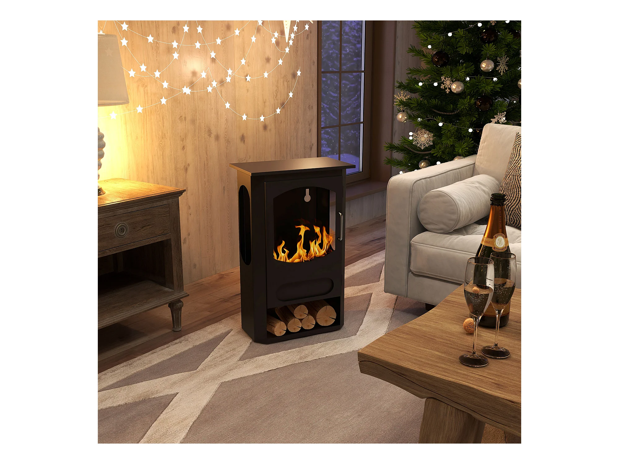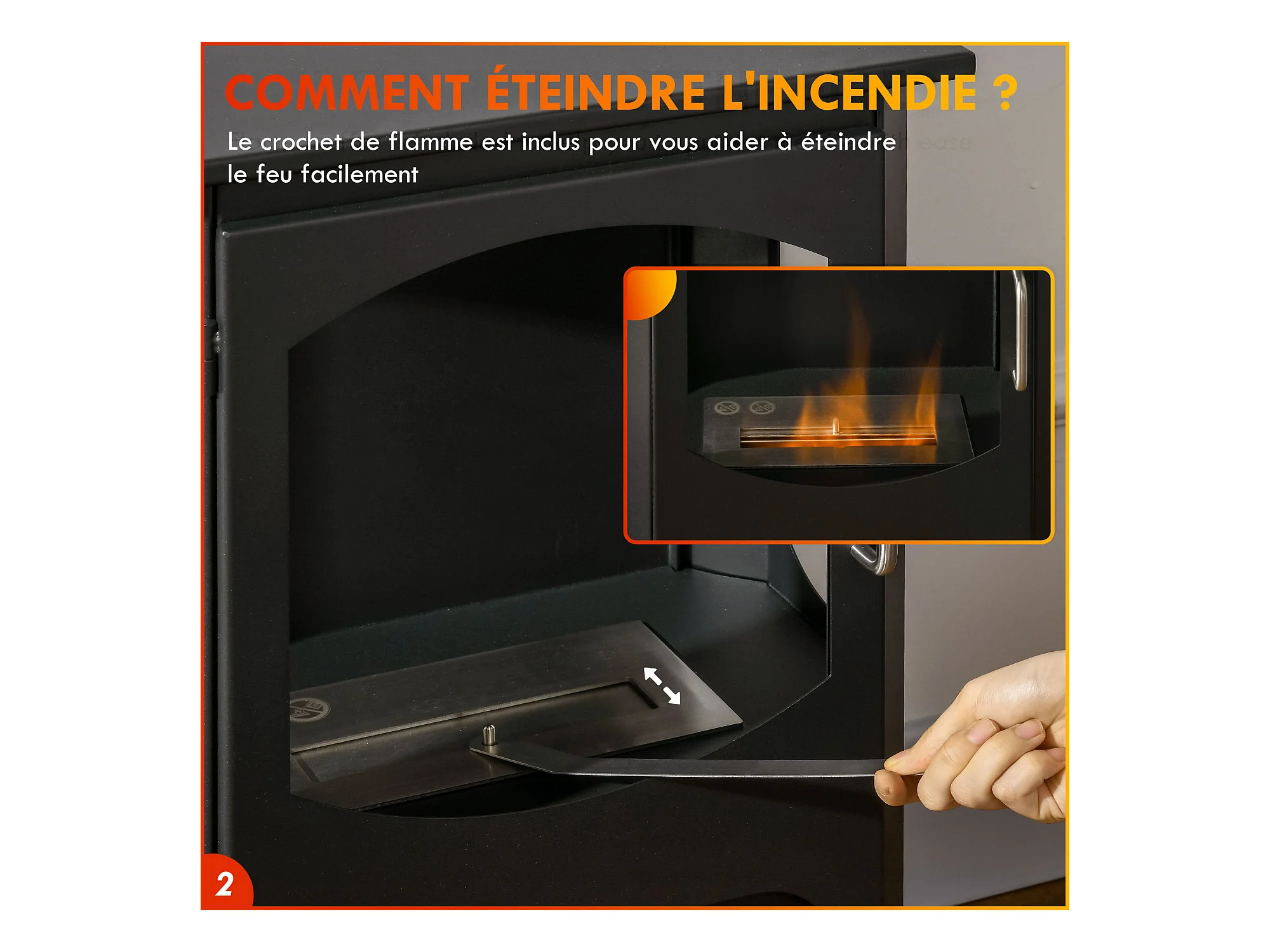 Cheminée bioéthanol design contemporain - range bûches - brûleur 1,2 L - contrôle de flamme et manche inclus - acier noir