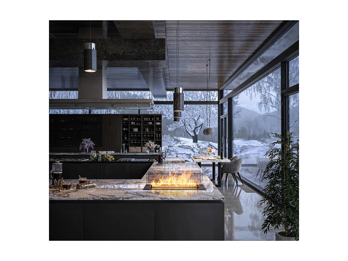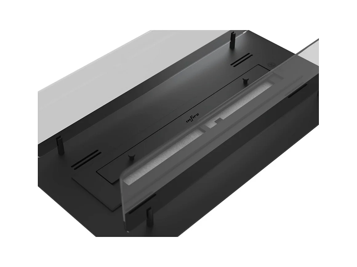 Cheminée bioéthanol Insert Black 600 - Cheminée fine noire à encastrer ou poser avec 2 panneaux verre, réservoir 1L - 60 cm