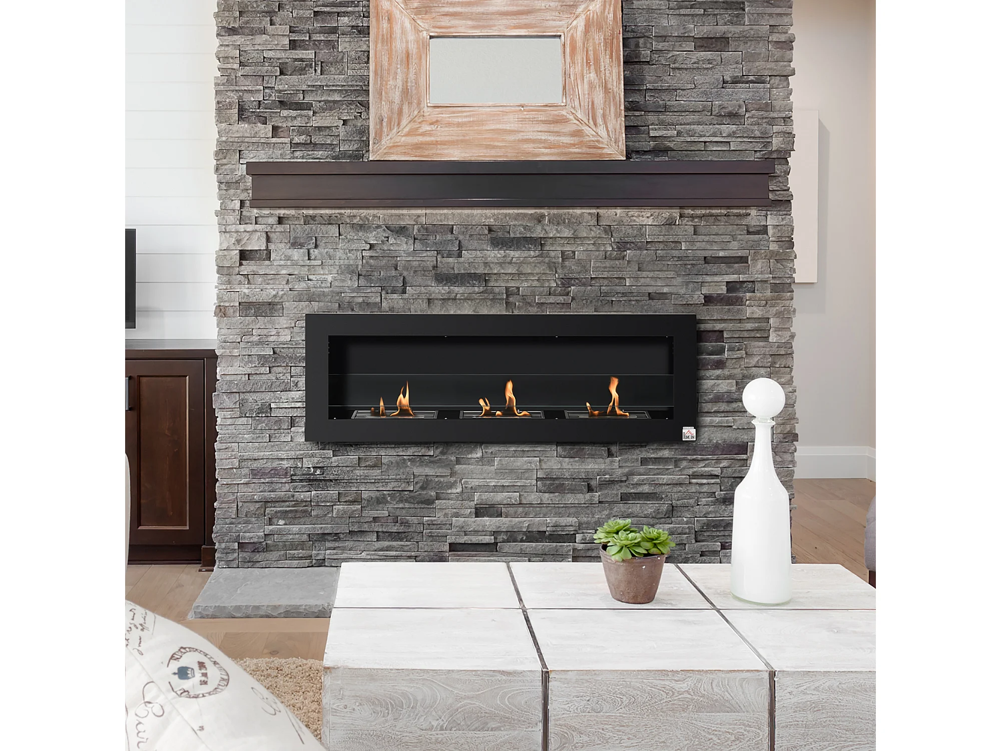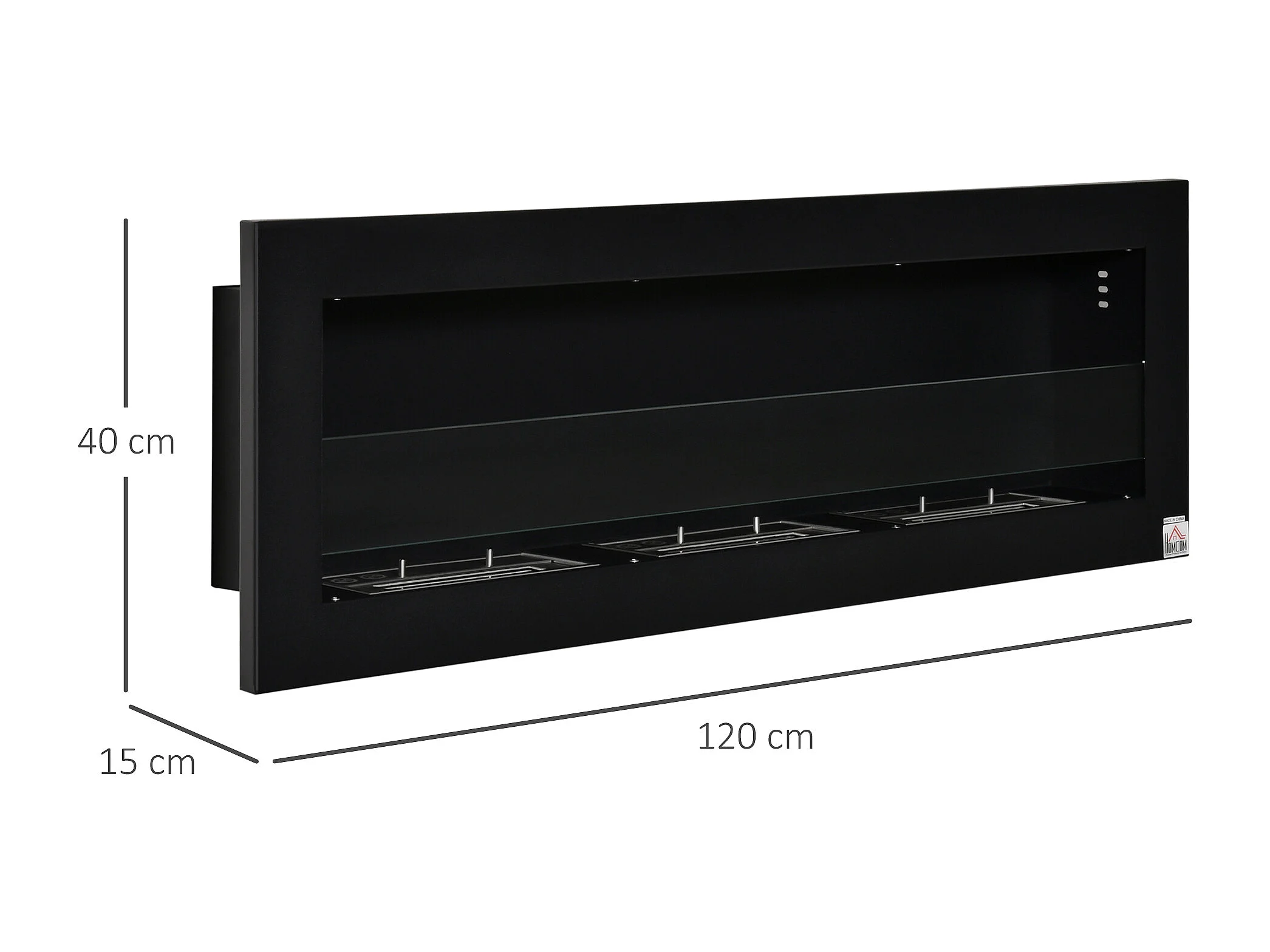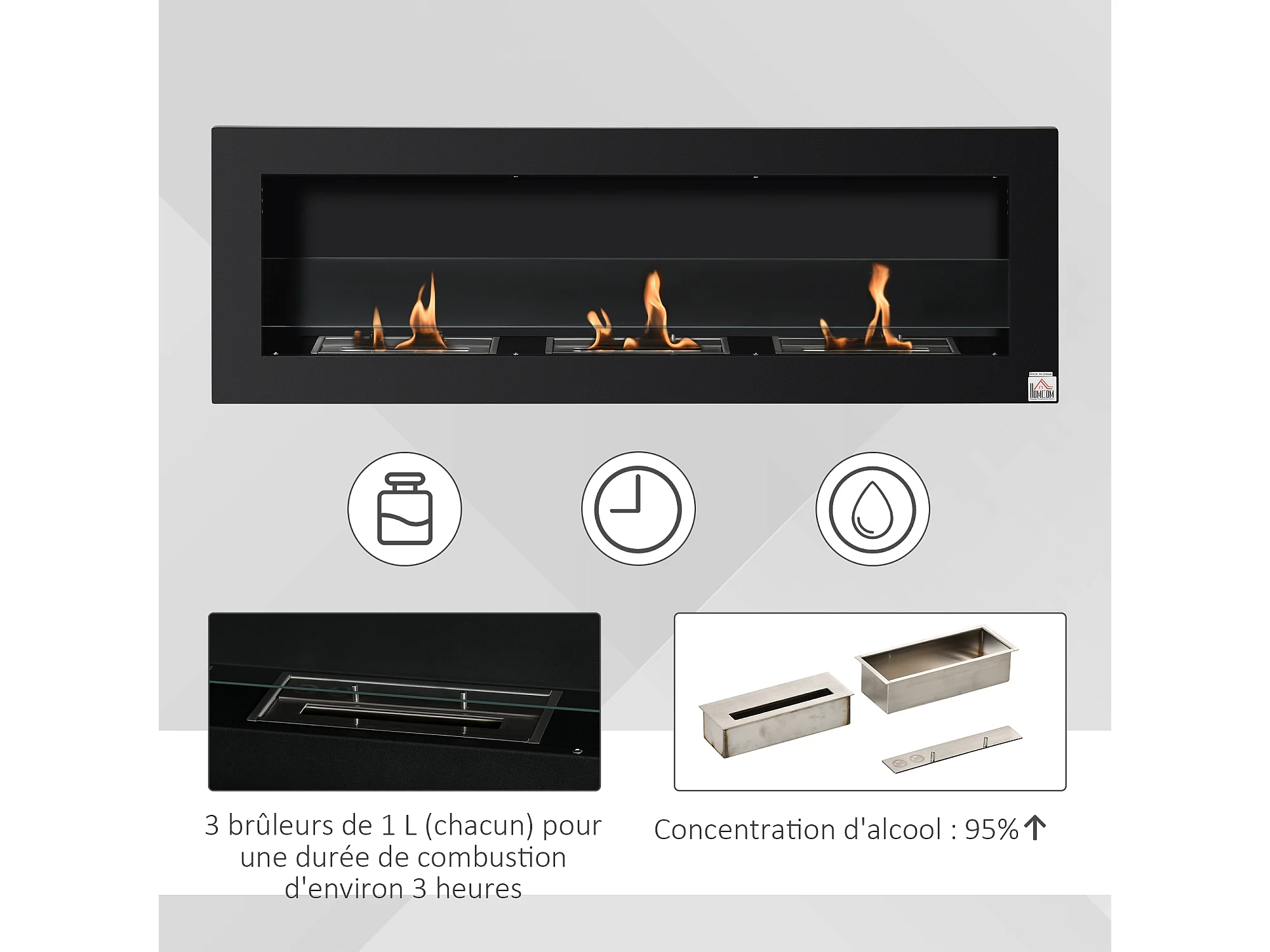 Cheminée bioéthanol murale design Bauhaus - triple brûleur 1 L - pare-feu verre trempé, kit fixation inclus - acier inox. acier dépoli noir