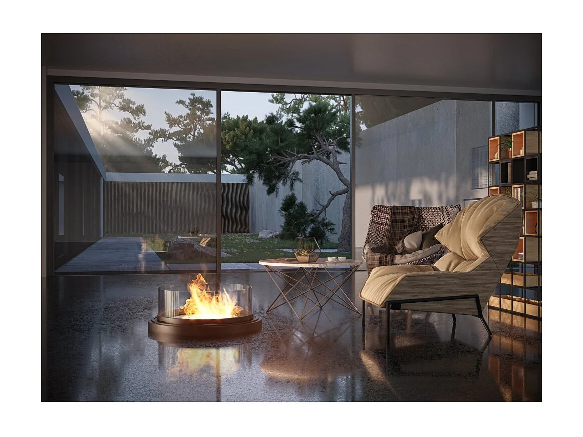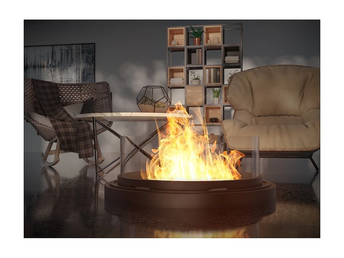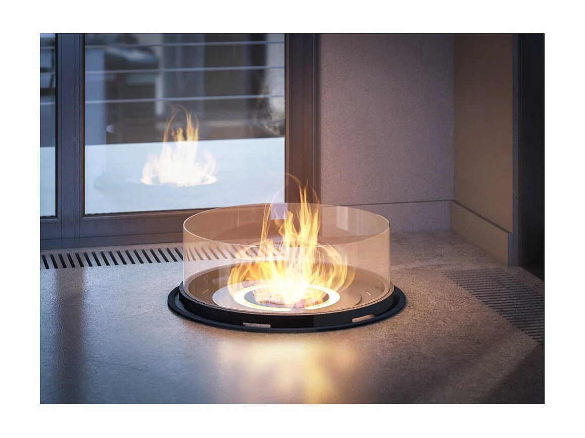 Cheminée bioéthanol ronde autoportante - Cheminée bioéthanol au sol noire avec conduit de fumée de 95 cm de diamètre