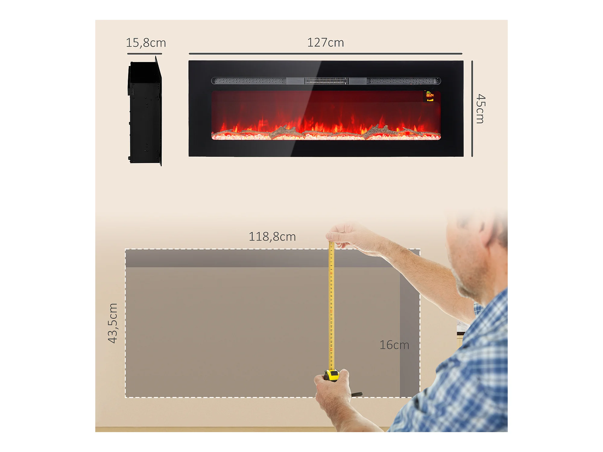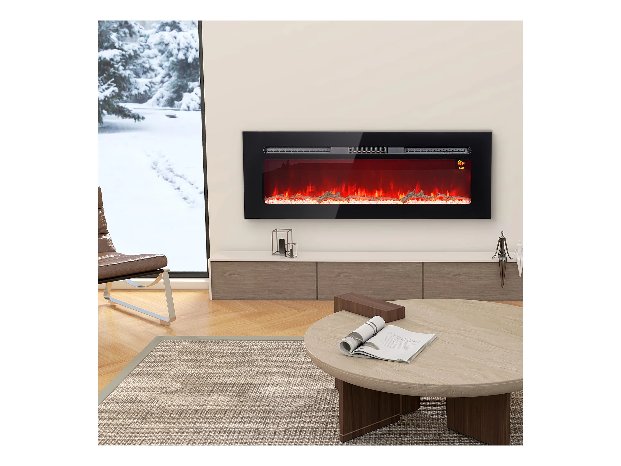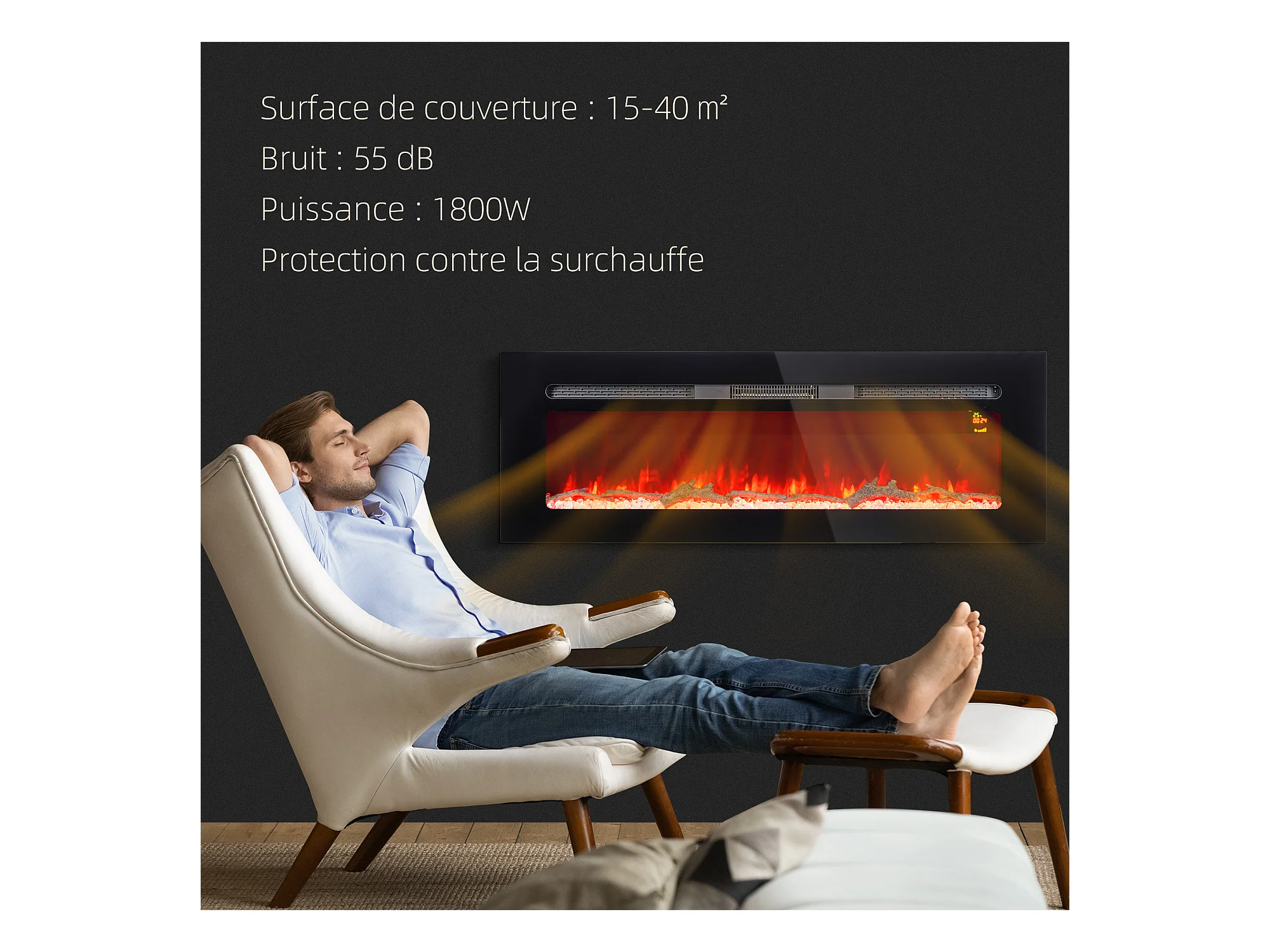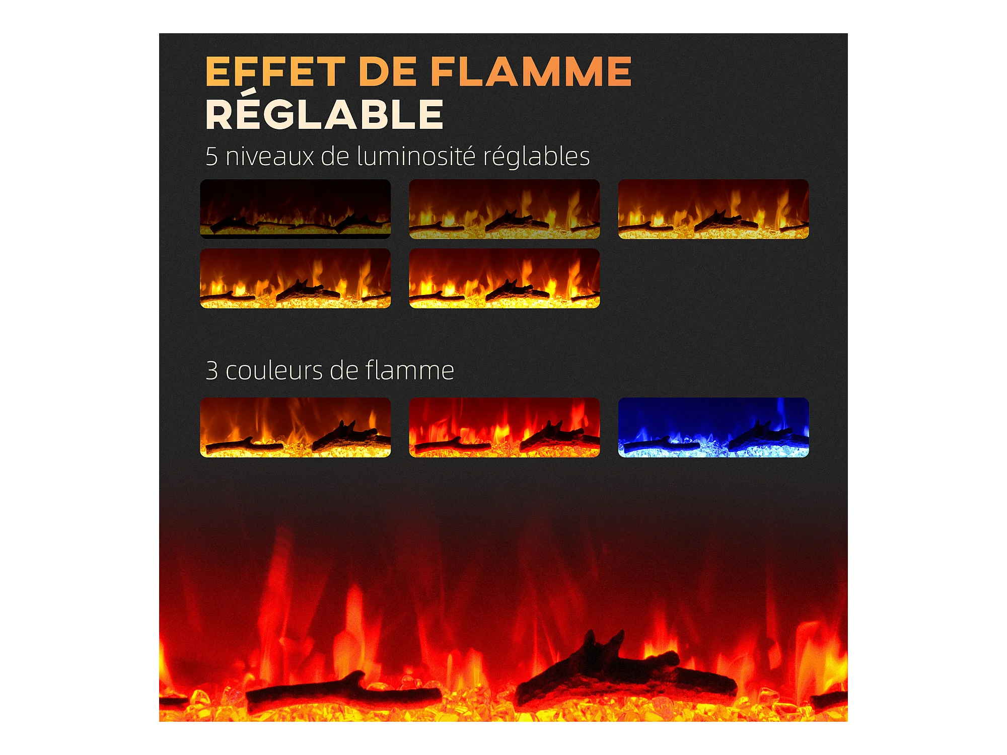 Cheminée électrique 1800W effets flammes LED 3D réglables - timer, thermostat, télécommande - noir