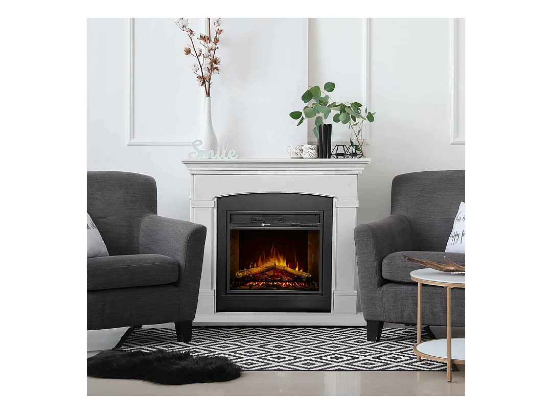 Cheminée Électrique Angrogna, Surface Chauffable 30 m² Made in Italy, 24x107x95,2h cm Blanc